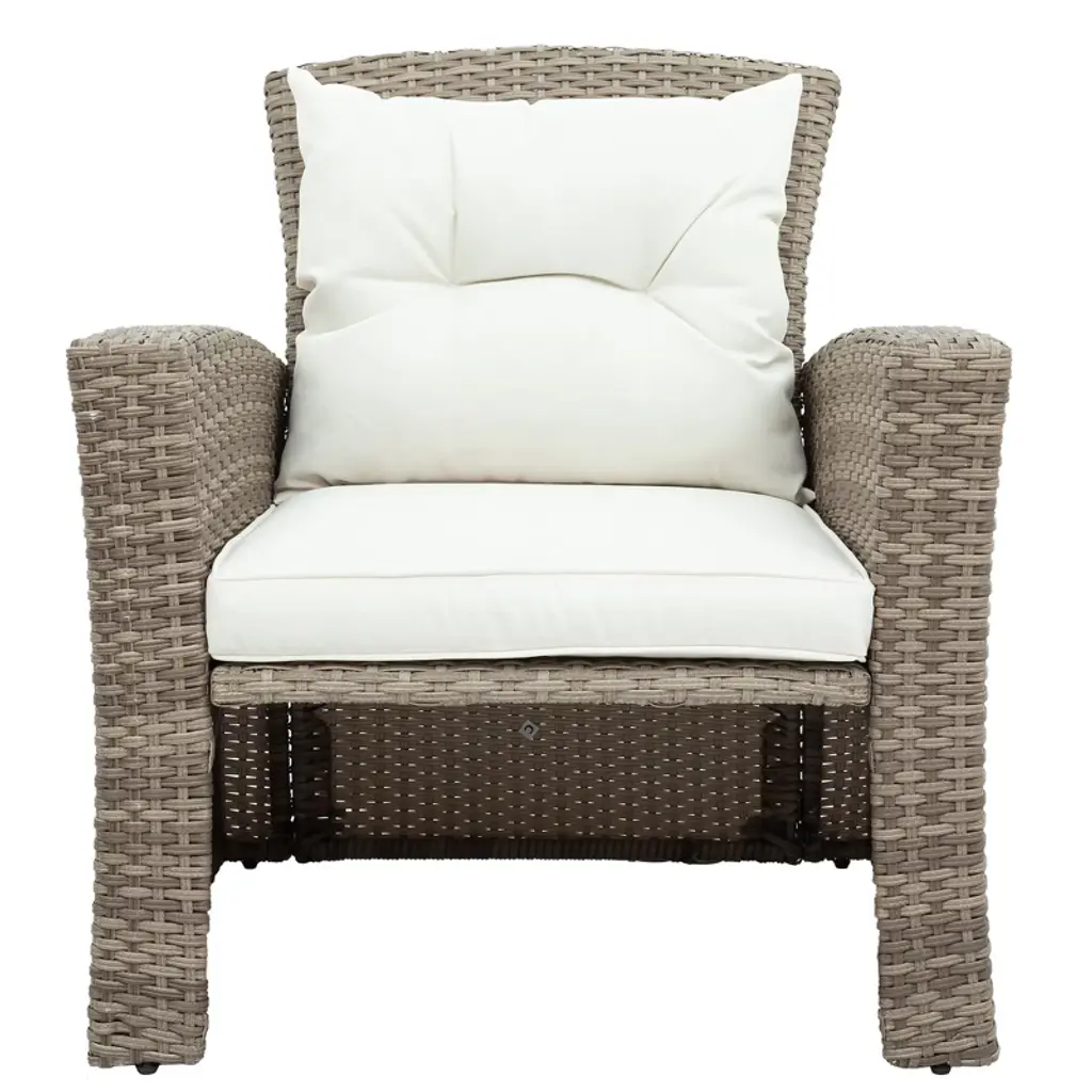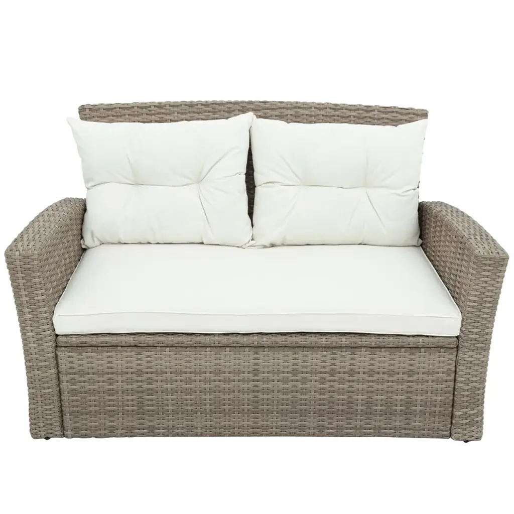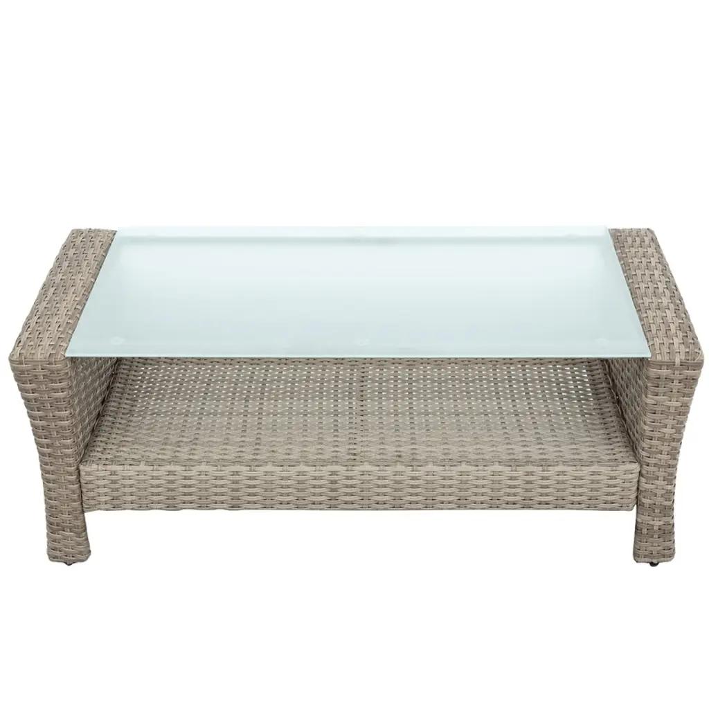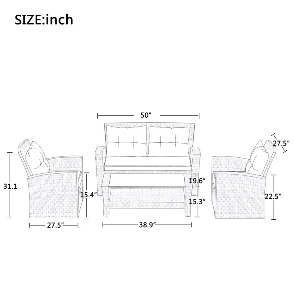 Transform your outdoor space with the Outdoor Tengbian Furniture Set, designed to bring both style and comfort to your patio, garden, or balcony. Featuring a trendy rattan motif, this set combines durability with elegance, making it the perfect addition to any outdoor setting. Product Features Trendy Rattan Motif: The intricate weave of the rattan not only offers a classic look but also ensures that the furniture will withstand the elements. Its stylish design blends seamlessly into modern and traditional outdoor spaces, providing both form and function.Ultimate Comfort: With thick cushions and backrests, the Tengbian sofa set is designed for relaxation. It cradles your back and waist, offering support where you need it most for hours of comfortable lounging with friends and family.Perfect for Socializing: This set includes a love seat, two single sofas, and a coffee table, ideal for a small gathering or outdoor entertaining. Whether you’re hosting a barbecue, picnic, or just relaxing in the open air, this set is designed to create the perfect atmosphere.Durable and Easy to Assemble: The furniture is made from high-quality PE rattan, a material known for its ability to withstand various weather conditions. The set also comes with detailed instructions, ensuring a simple and quick assembly process. Dimensions Twin Seat Size: 50" x 27.5" x 31.1"Single Seat Size: 27.5" x 27.5" x 31.1"Coffee Table Size: 38.9" x 19.6" x 15.3" Specifications Items Included: 1 Love Sofa, 2 Single Sofas, 1 Coffee TableTable Top Material: GlassFrame Material: PE RattanSeating Capacity: 4Single Sofa Weight Capacity: 220 lbsLove Sofa Weight Capacity: 440 lbsSupplier Intended and Approved Use: Residential Use Notice Color: Due to lighting or screen display, the actual color may slightly differ from the images. Please refer to the actual product for the precise color.Size: Manual measurements are used, so slight variations may occur. Enhance your outdoor living with the Tengbian Furniture Set, combining style, comfort, and durability for the ultimate outdoor experience. Perfect for relaxing or entertaining, this set is a must-have for anyone looking to make the most of their outdoor space.