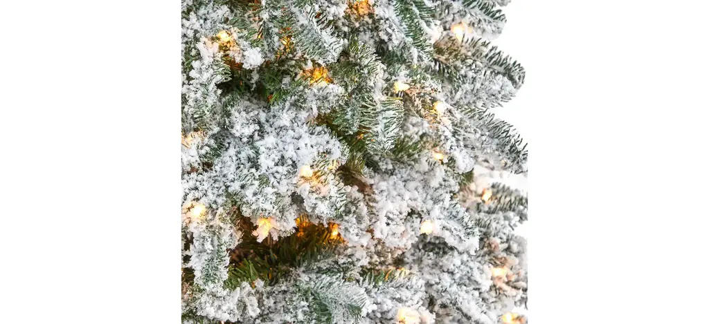 Create a winter-inspired Christmas scene without the hassle of upkeep or maintenance with the help of the 6' Pre-Lit Flocked North Carolina Fir Artificial Tree.
