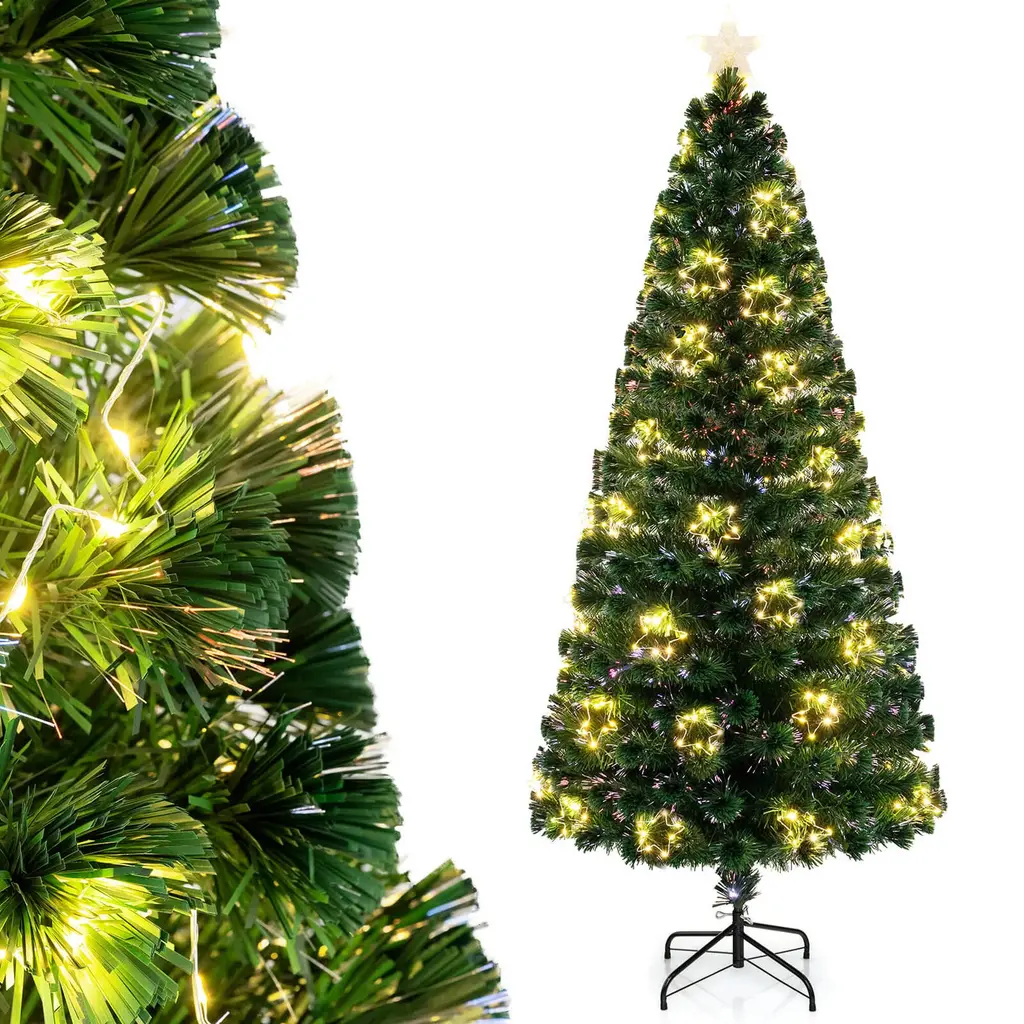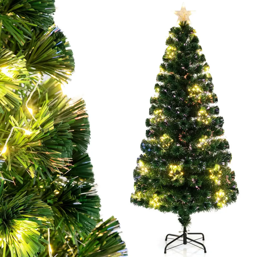 6' Pre-Lit Led Fiber Optic Color Changing Christmas Tree With Star Tree Topper - 6 Foot