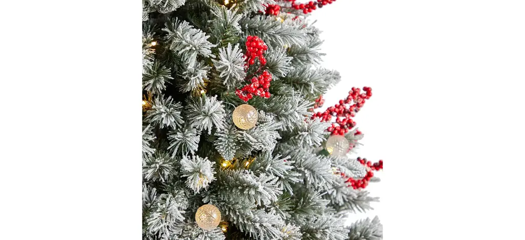 Have a berry merry Christmas with the help of the 6' Snow Tipped Norwegian Fir Pre-Lit Artificial Tree. Inspired by nature, this robust silhouette mimics the real natural foliage and texture found in their European counterparts.