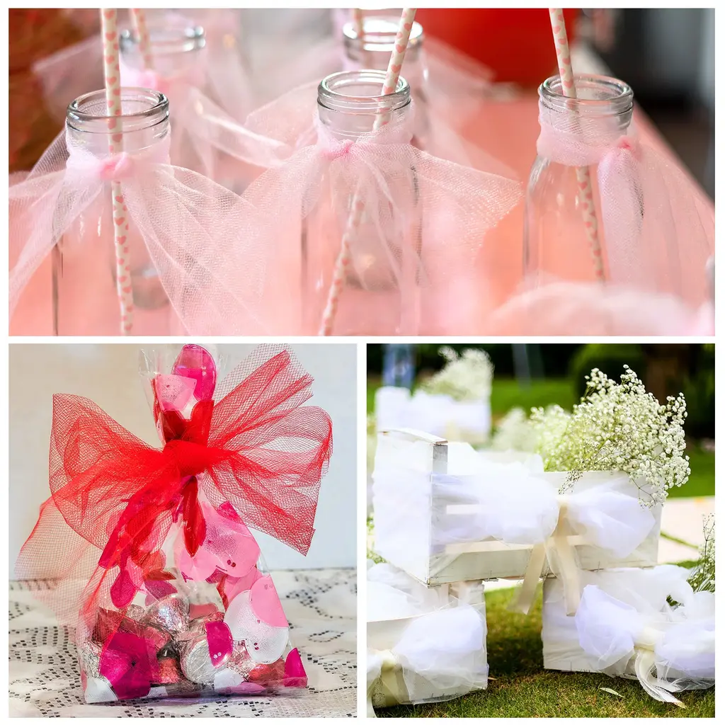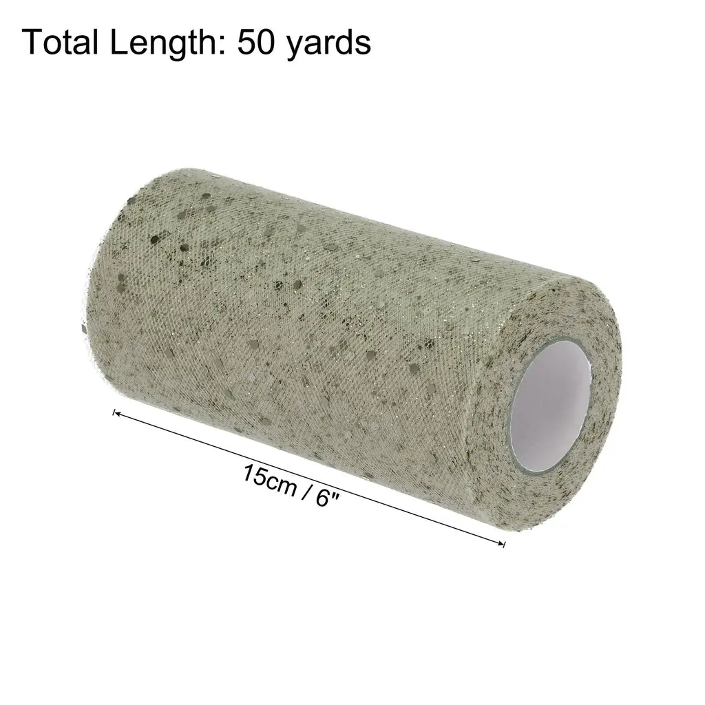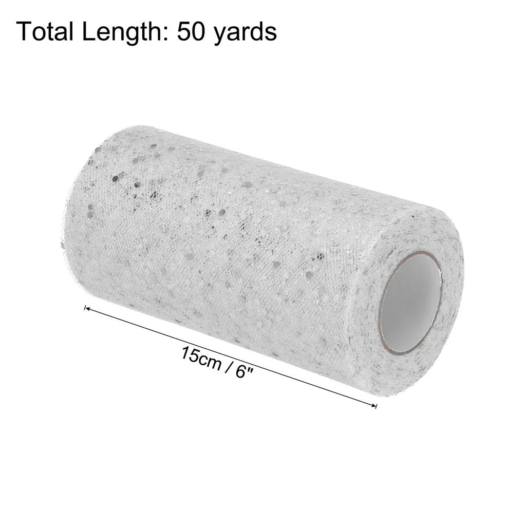 What is this?Glitter sequin fabric tulle ribbon roll is a romantic and elegant decorative material that can be used for gift decoration on important holidays such as weddings, birthday, Christmas, Mother's Day, Teacher's Day, etc. Bling tulle ribbon can decorate various bouquets, gifts, flower baskets, chairs, tables, etc. Sparkling tulle ribbons can also be used for various DIY sewing craft projects, such as making flower wreaths, hair bows, wristbands, and sewing puffy skirts.What will I get?Tulle roll fabric spools ribbon, is in size of :15cm/6-inch width, 50 yards total lengthIn the package of: 1pcs x Tulle roll fabric spoolsIs there any advantages of the product?The glitter tulle fabric roll is soft, transparent, with stars shining and beautiful, making it an elegant and generous decorative fabric; Glitter tulle fabric ribbons can be knotted and made into various colorful bows, used in hair accessories, clothing, bouquets, DIY, etc; Tulle ribbon for gift wrapping is durable, lightweight, and reusableHow to use it?Steps of installation:1.Prepare tulle roll fabric spools of an appropriate size ; 2.Cut out the length you wantWhat should I notice?Please Note : Please select the appropriate size of tulle roll fabric spools ribbon, especially the size of width and length