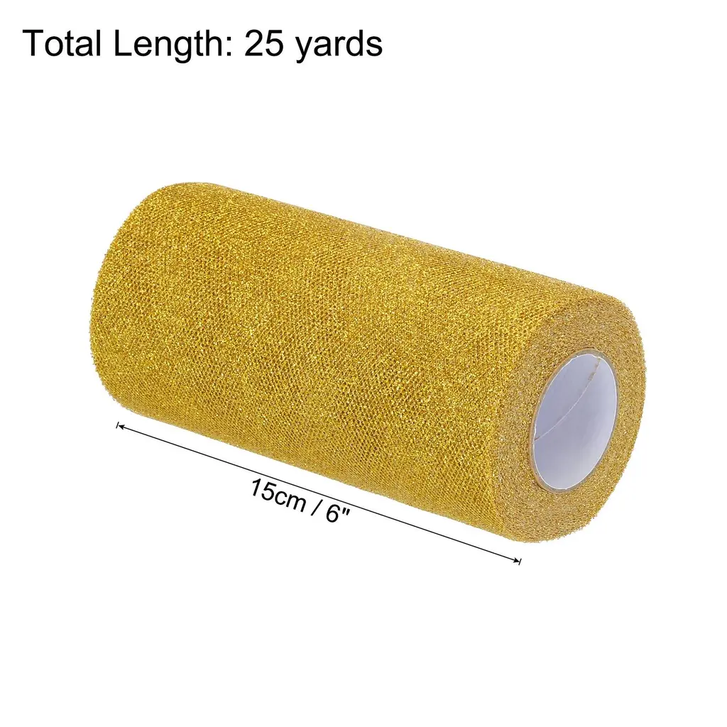 What is this?Glitter sequin fabric tulle ribbon roll is a romantic and elegant decorative material that can be used for gift decoration on important holidays such as weddings, birthday, Christmas, Mother's Day, Teacher's Day, etc. Bling tulle ribbon can decorate various bouquets, gifts, flower baskets, chairs, tables, etc. Sparkling tulle ribbons can also be used for various DIY sewing craft projects, such as making flower wreaths, hair bows, wristbands, and sewing puffy skirts.What will I get?Tulle roll fabric spools ribbon, is in size of :15cm/6-inch width, 50 yards total lengthIn the package of: 1pcs x Tulle roll fabric spoolsIs there any advantages of the product?The glitter tulle fabric roll is soft, transparent, with stars shining and beautiful, making it an elegant and generous decorative fabric; Glitter tulle fabric ribbons can be knotted and made into various colorful bows, used in hair accessories, clothing, bouquets, DIY, etc; Tulle ribbon for gift wrapping is durable, lightweight, and reusableHow to use it?Steps of installation:1.Prepare tulle roll fabric spools of an appropriate size ; 2.Cut out the length you wantWhat should I notice?Please Note : Please select the appropriate size of tulle roll fabric spools ribbon, especially the size of width and length