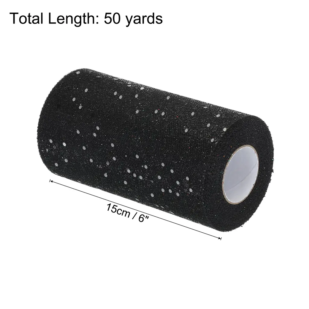 What is this?Glitter sequin fabric tulle ribbon roll is a romantic and elegant decorative material that can be used for gift decoration on important holidays such as weddings, birthday, Christmas, Mother's Day, Teacher's Day, etc. Bling tulle ribbon can decorate various bouquets, gifts, flower baskets, chairs, tables, etc. Sparkling tulle ribbons can also be used for various DIY sewing craft projects, such as making flower wreaths, hair bows, wristbands, and sewing puffy skirts.What will I get?Tulle roll fabric spools ribbon, is in size of :15cm/6-inch width, 50 yards total lengthIn the package of: 1pcs x Tulle roll fabric spoolsIs there any advantages of the product?The glitter tulle fabric roll is soft, transparent, with stars shining and beautiful, making it an elegant and generous decorative fabric; Glitter tulle fabric ribbons can be knotted and made into various colorful bows, used in hair accessories, clothing, bouquets, DIY, etc; Tulle ribbon for gift wrapping is durable, lightweight, and reusableHow to use it?Steps of installation:1.Prepare tulle roll fabric spools of an appropriate size ; 2.Cut out the length you wantWhat should I notice?Please Note : Please select the appropriate size of tulle roll fabric spools ribbon, especially the size of width and length