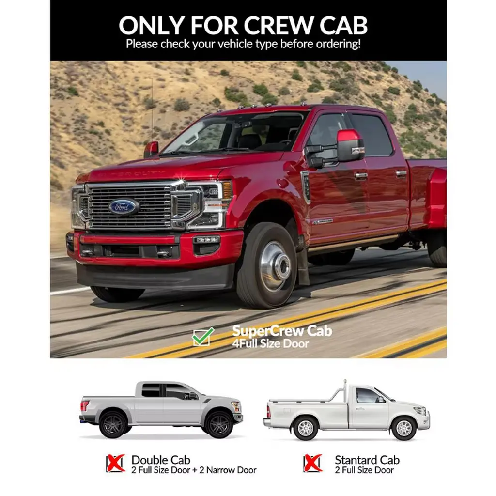 Made exclusively for the US ford F150 / F250 / F350 pickup truck, suitable for the 2015-2022 model year. Quick bolt installation, nondestructive original car, completed within an hour.6-inch non-skid pedal, bearing up to 450 pounds. Top corrosive aluminum, black powder coating against rust. The set contains two pedals, brackets and accessories, easy to install. Enhance the cab access convenience, safety and durability, quality choice!