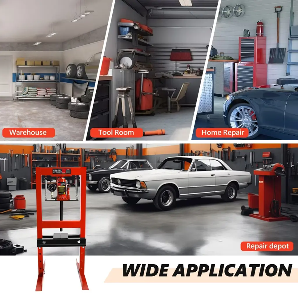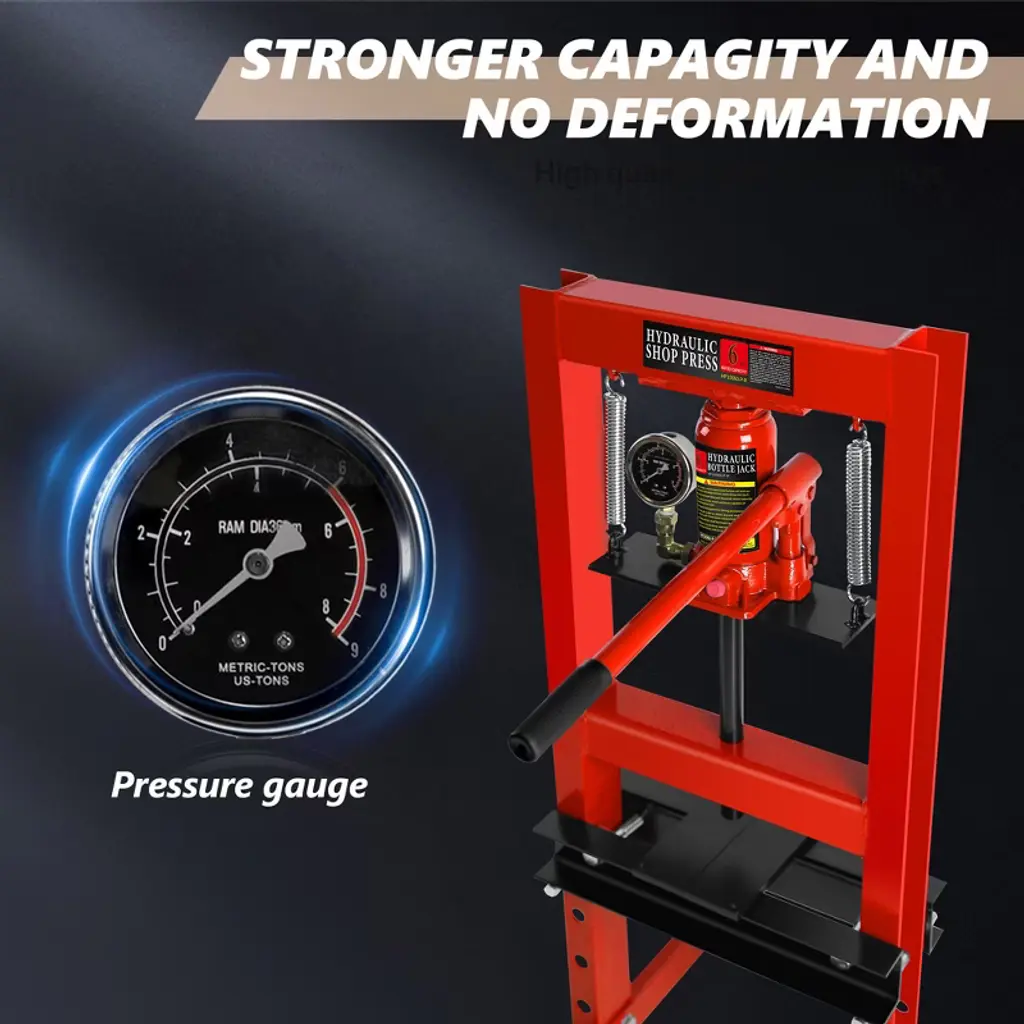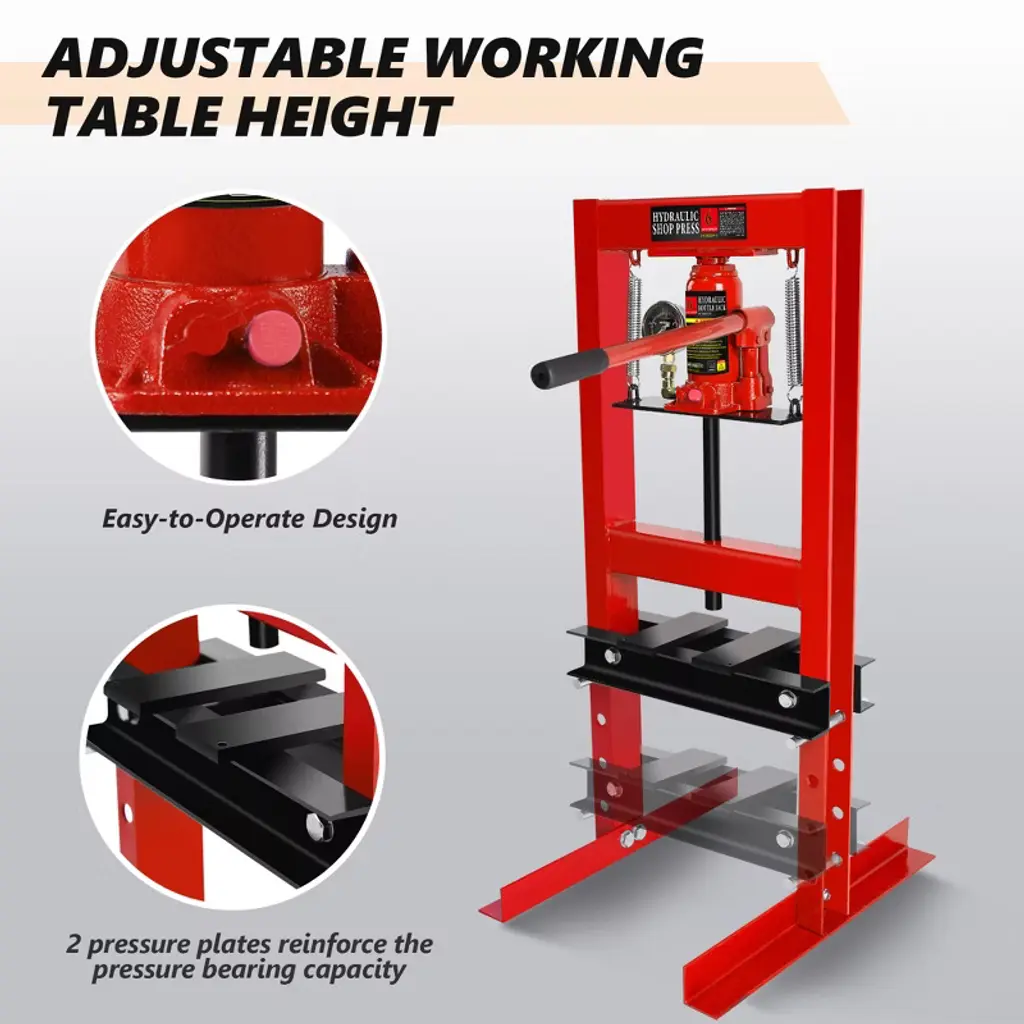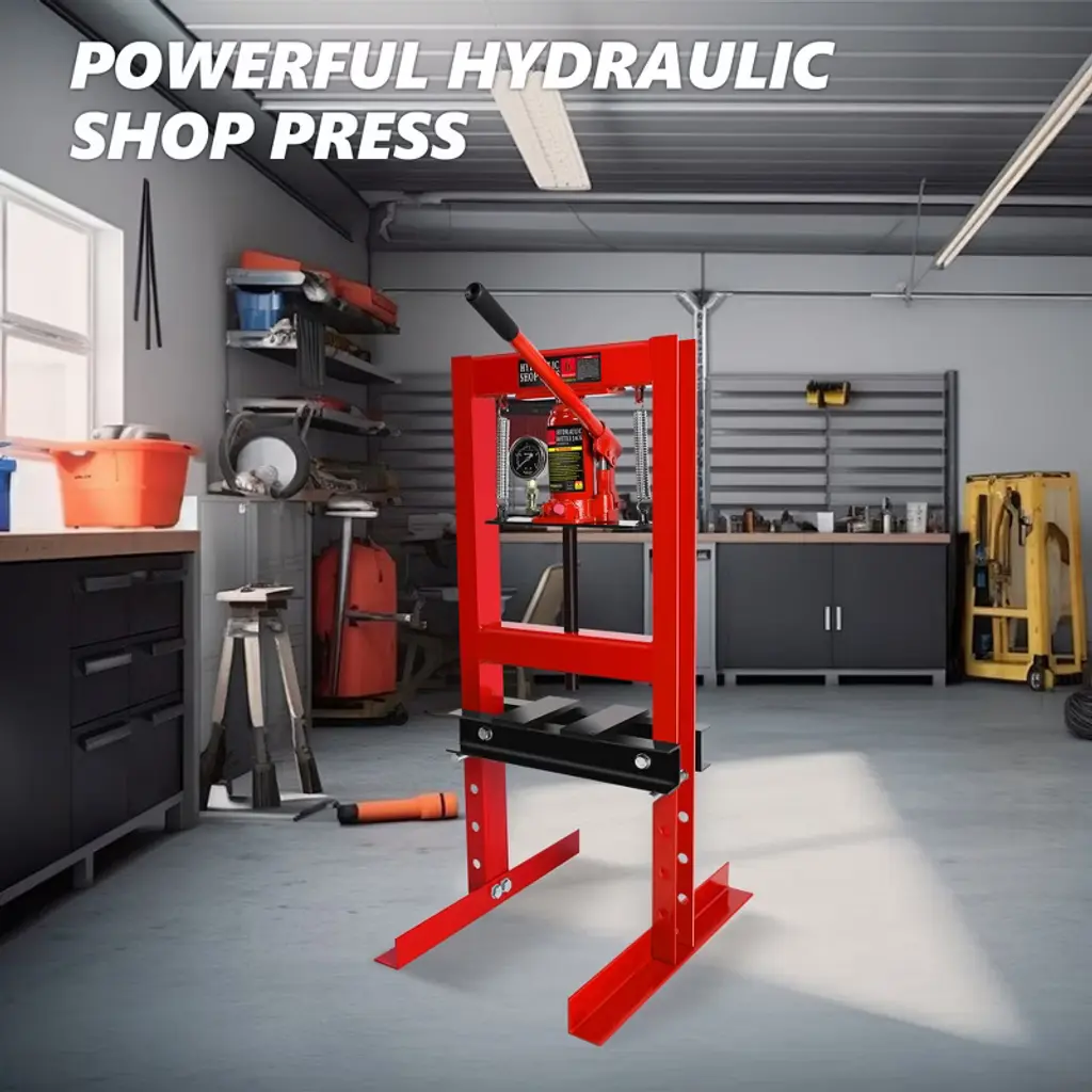 6 Ton Hydraulic Shop Press, H-frame Garage Floor Adjustable Shop Press With Press Plate, Hydraulic Shop Floor Press, Red With Pressure Gauge
