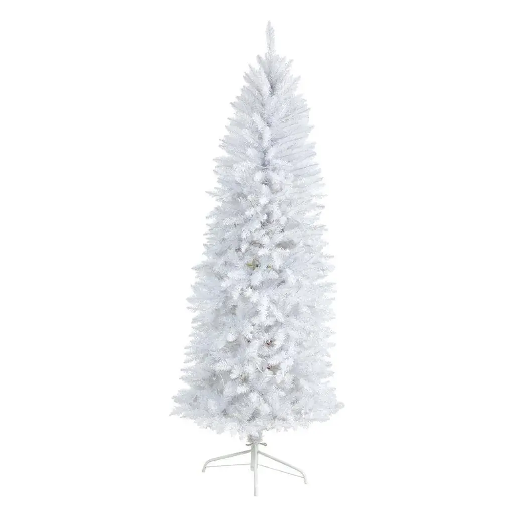 Specifications:Description:Are you dreaming of a white Christmas Fulfill all your dreams with this white artificial Christmas tree. Inspired by nature, this tree has a slim silhouette that mimics its real counterparts' natural foliage and texture. With 743 bendable branches, you can easily display all your favorite ornaments. Save time and money with the pre-strung 250-lights. Standing 6 ft. from a metal stand, curate in any compact area. Perfect for an apartment, kids' room or home office. Faux Christmas Trees are manufactured using synthetic materials, such as polyester material or plastic and are well designed and constructed to be life-like in appearance. This item will need to be re-shaped when removed from the secure box to allow it to reach its fullest size. Your artificial Christmas Tree will look beautiful for years to come, simply wipe clean with a soft dry cloth when needed.