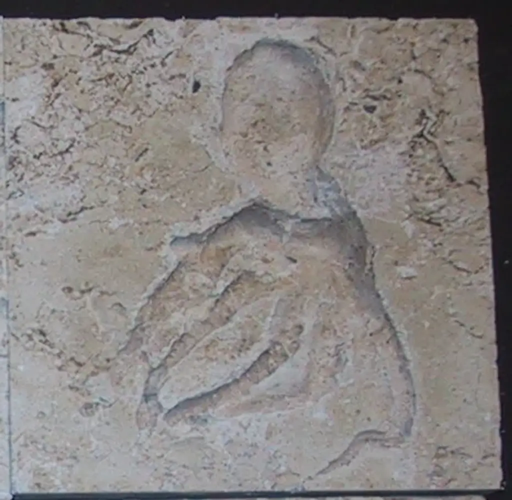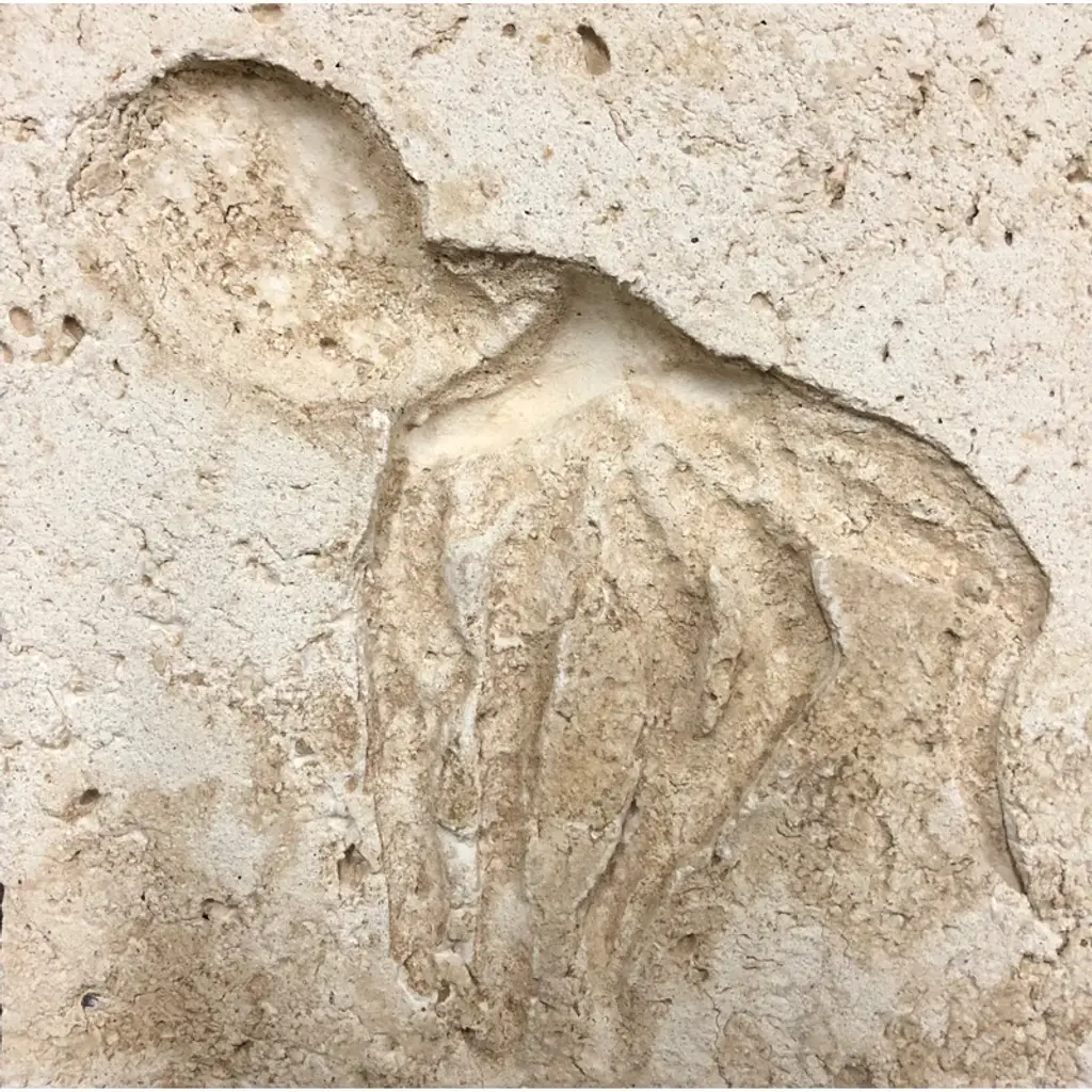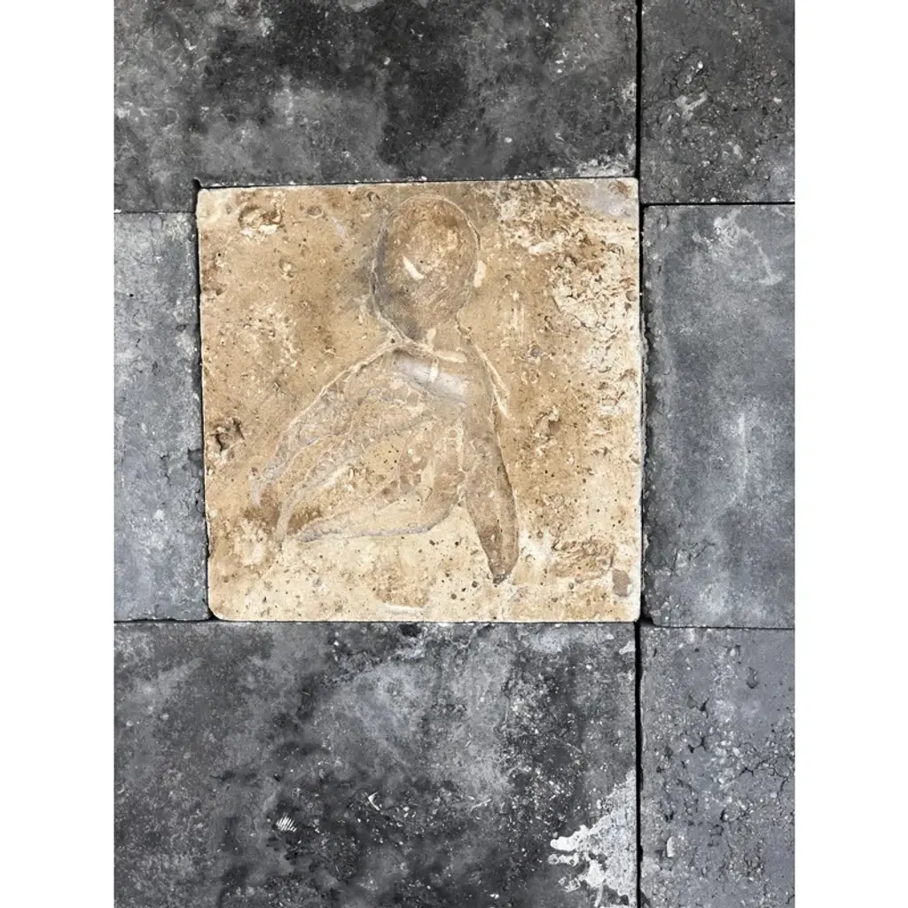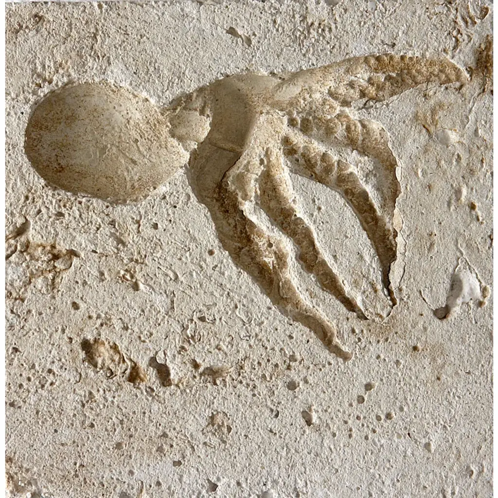 6" X 6" Seastone Cement Squid Fossil Impression Square Edge Medallion Tile In Buff