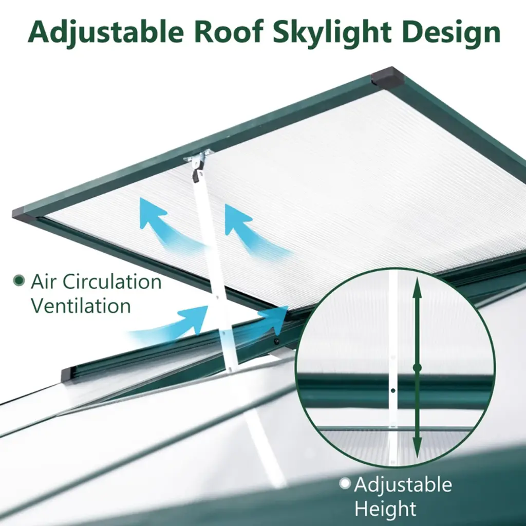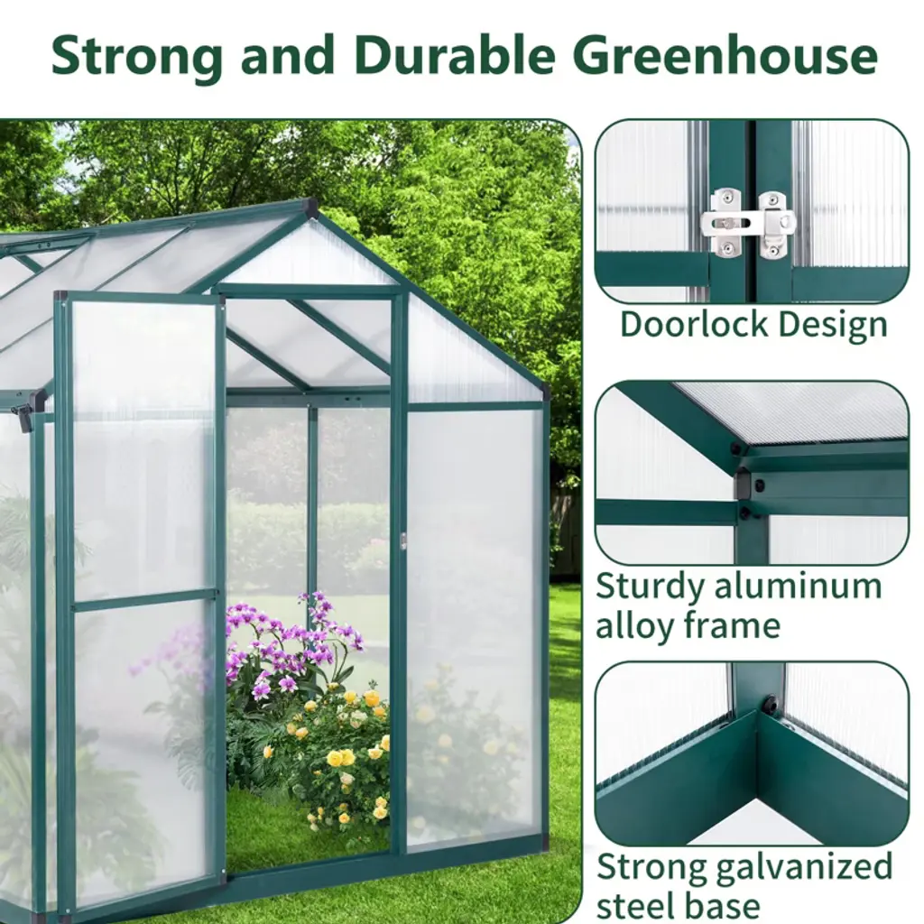 6 X 8Ft Polycarbonate Walk-in Greenhouse With Lockable Doors Adjustable Vent Window Heavy Duty Aluminum Frame Outdoor Garden
