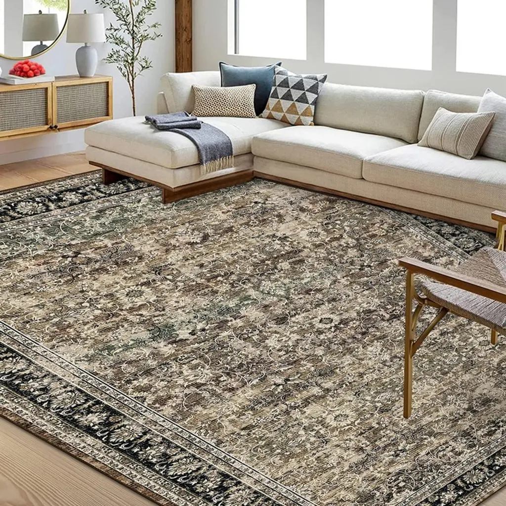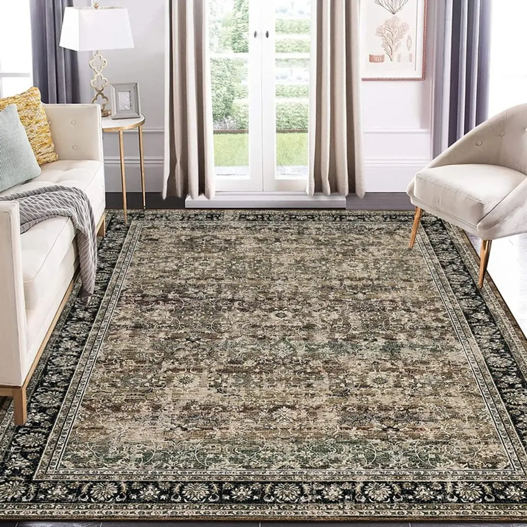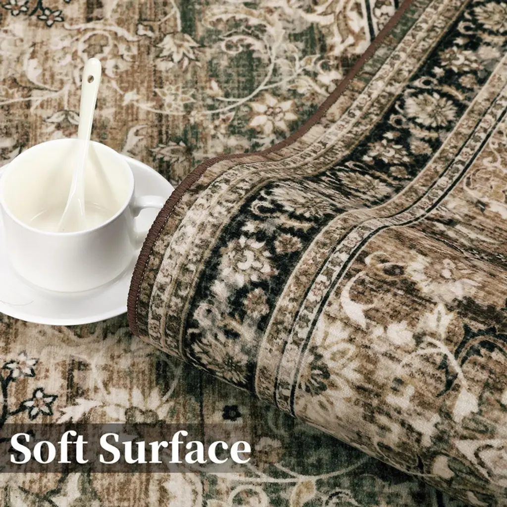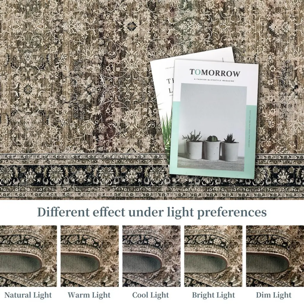 6 X 9 Ft Polyester Imitation Brown Rectangular Hallway Bathroom Entryway Kitchen Office Foldable Flower Printed Washable Area Rug