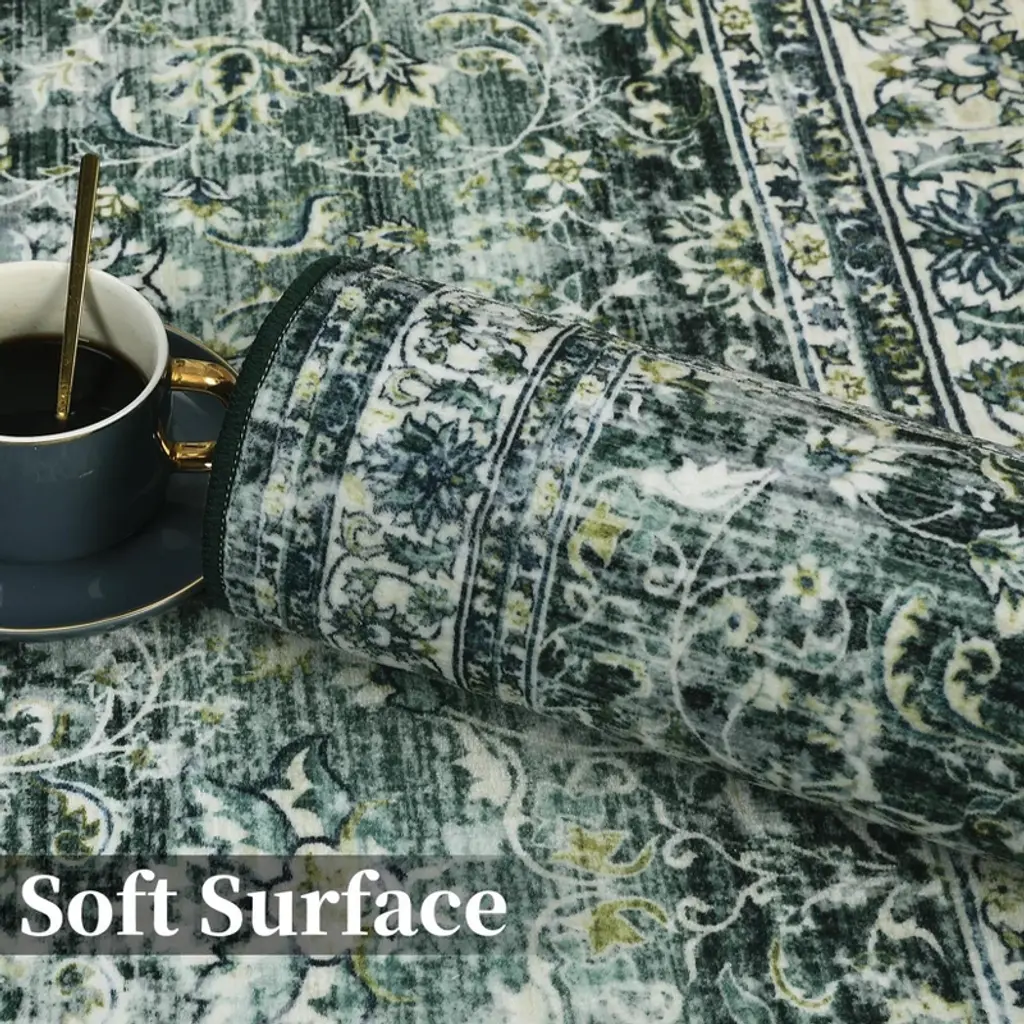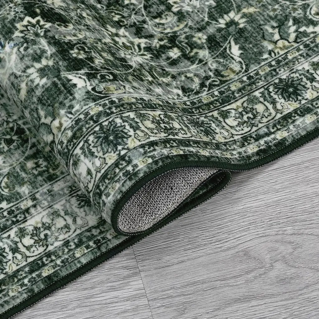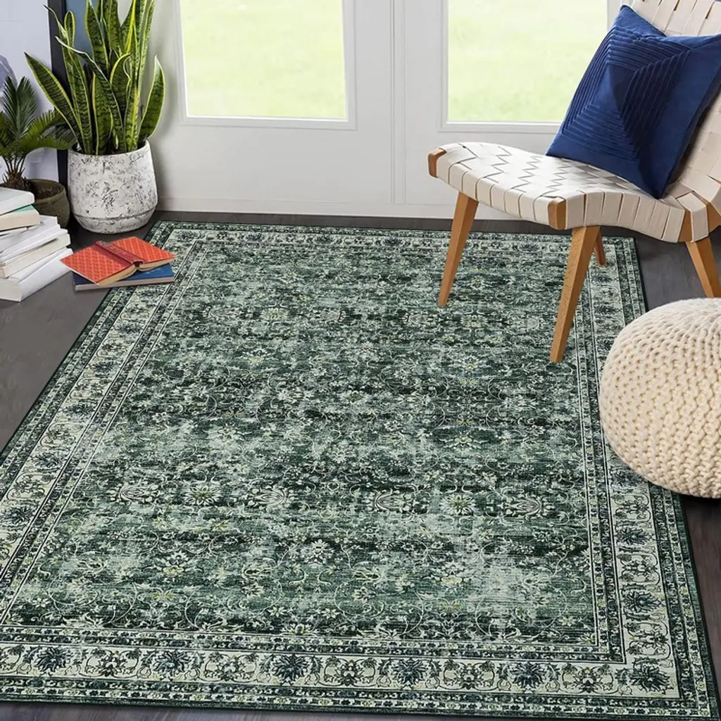 6 X 9 Ft Polyester Imitation Green Rectangular Hallway Bathroom Entryway Kitchen Office Foldable Flower Printed Washable Area Rug