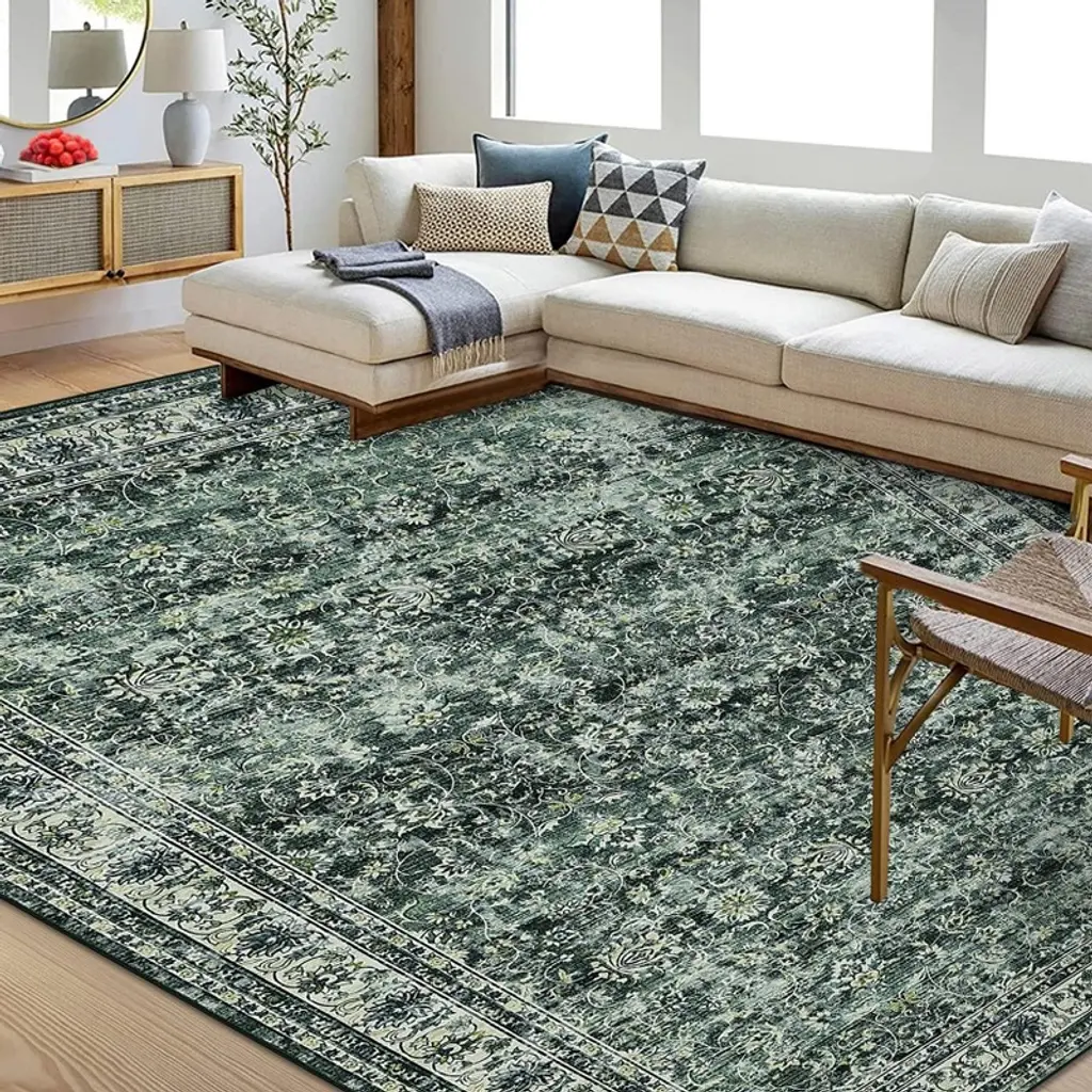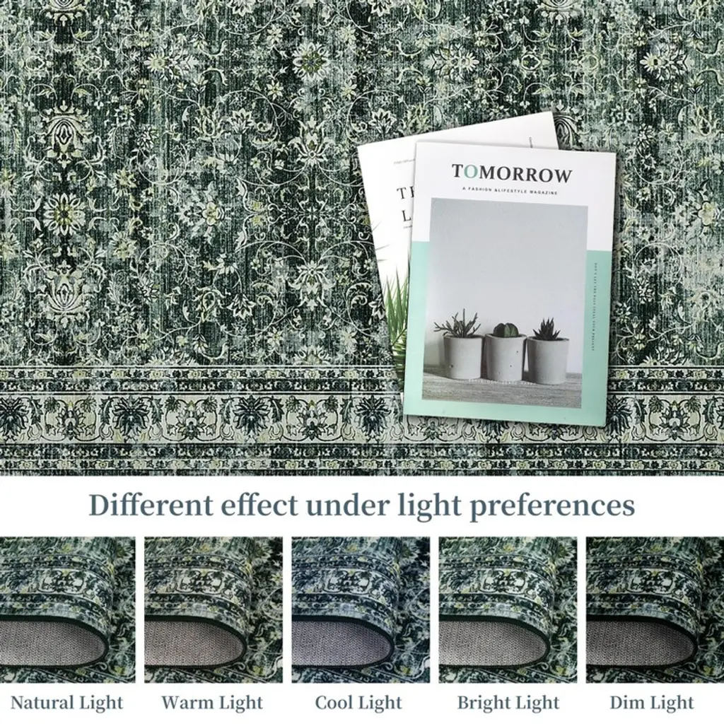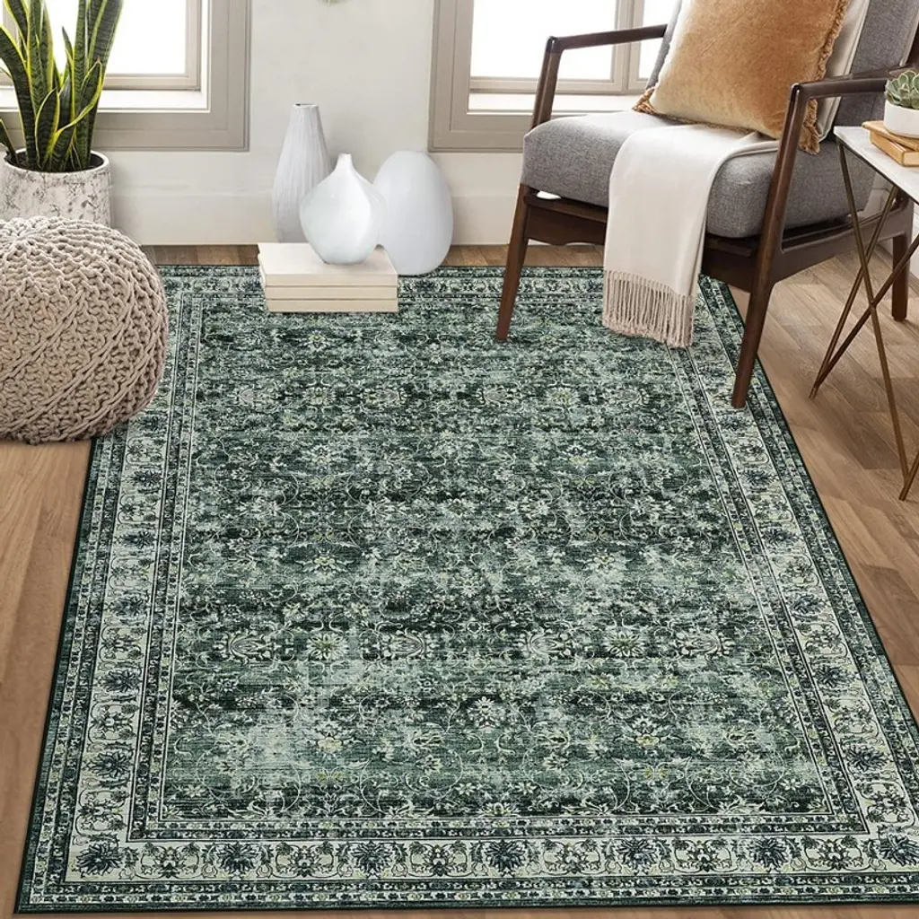 6 X 9 Ft Polyester Imitation Green Rectangular Hallway Bathroom Entryway Kitchen Office Foldable Flower Printed Washable Area Rug