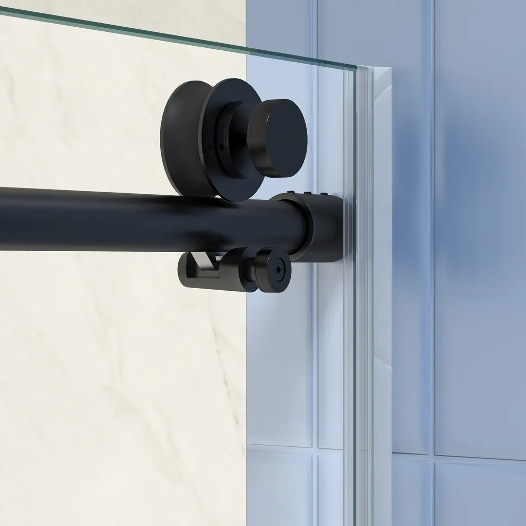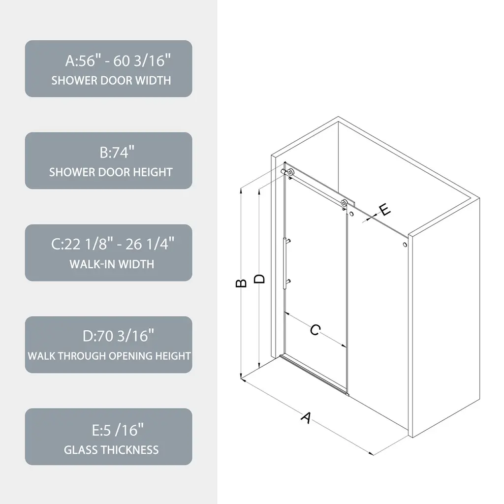 Our shower door is a paragon of quality and functionality, designed to transform your bathroom experience. Crafted with top-notch #304 stainless steel hardware, it has endured a rigorous 36,000 times open and close test, ensuring unrivaled durability that stands the test of time. The SGCC 5/16" tempered clear glass features a Nano easy clean treatment. This innovative addition makes cleaning a breeze, always keeping the glass looking spotless with minimal effort.The smooth and comfortable sliding system enables effortless operation, adding a touch of luxury to your daily shower routine. With an excellent anti-leakage function, you can say goodbye to wet bathroom floors. Even if you have uneven walls, our adjustable wall channel has got you covered, fitting seamlessly into any bathroom layout. Moreover, the soft close system shuts the door gently and quietly, preventing any jarring slams and enhancing the overall refinement of your bathroom space.
