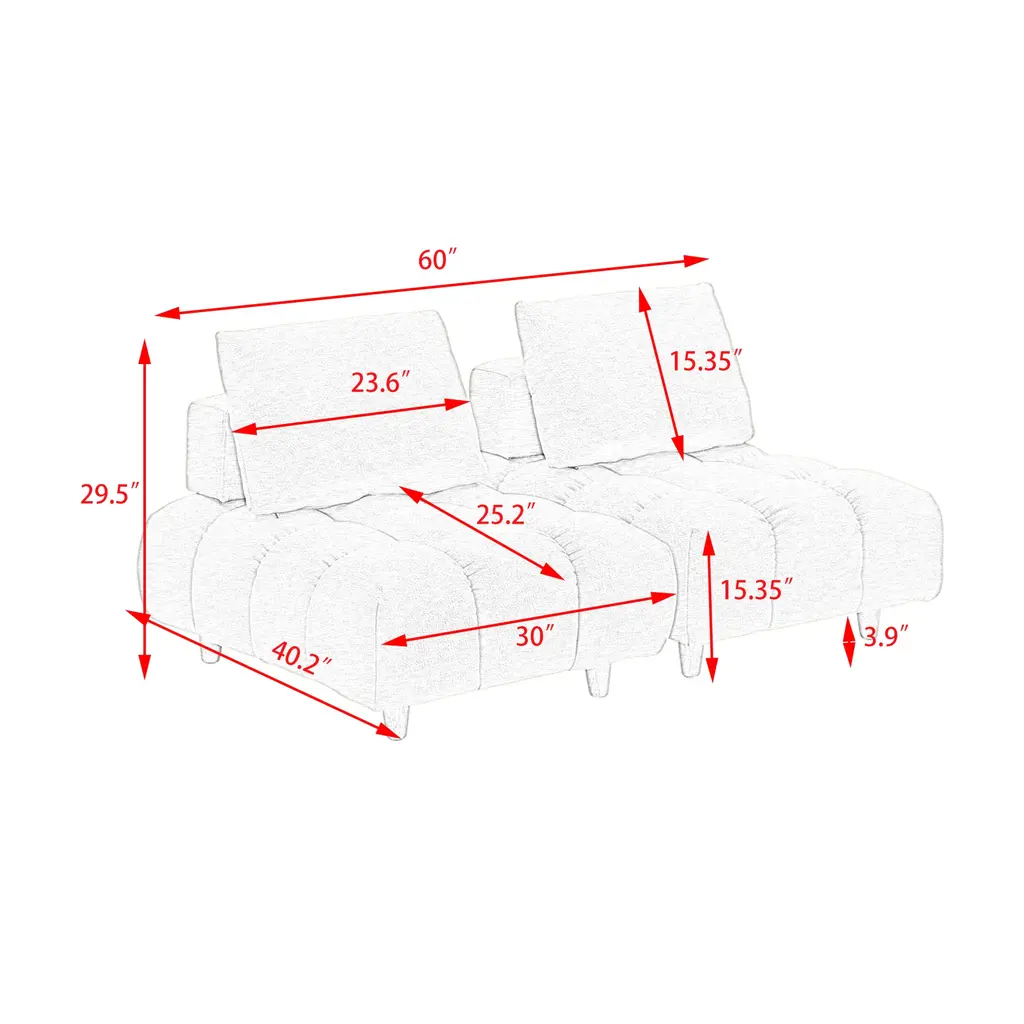 60 Inches Long, Teddy Sofa Fabric, With Spacious And Comfortable Seat,single Sofa Sets Of 2,loveseat - Gray