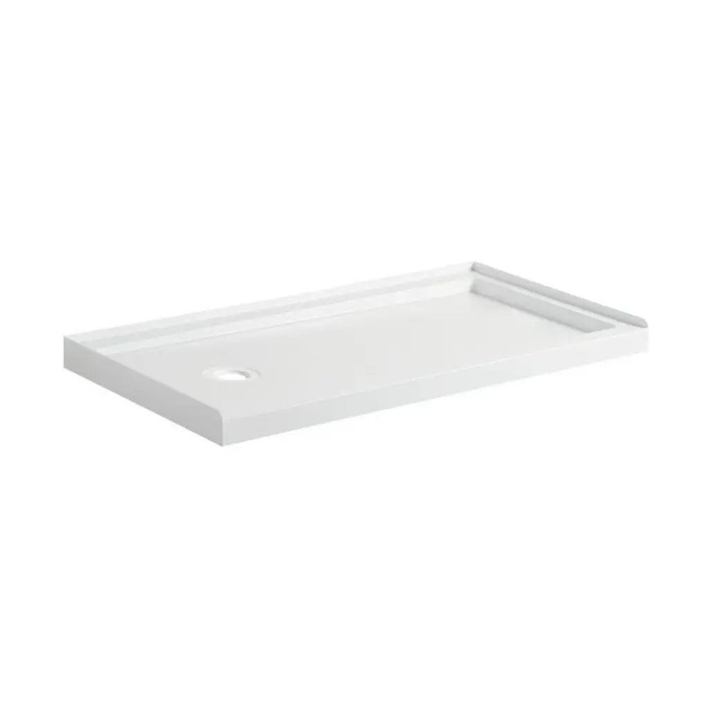 Designed to fit into an existing alcove, the 60" Acrylic Shower Tray is the perfect starting piece for a spacious walk-in shower Featuring a one-piece, single threshold design, this base has an integral tile flange to make installation more efficient On the floor of the pan, a non-skid surface prevents slipping when showering and while stepping in and out Your choice of drain location ensures this product will install in any bathroom