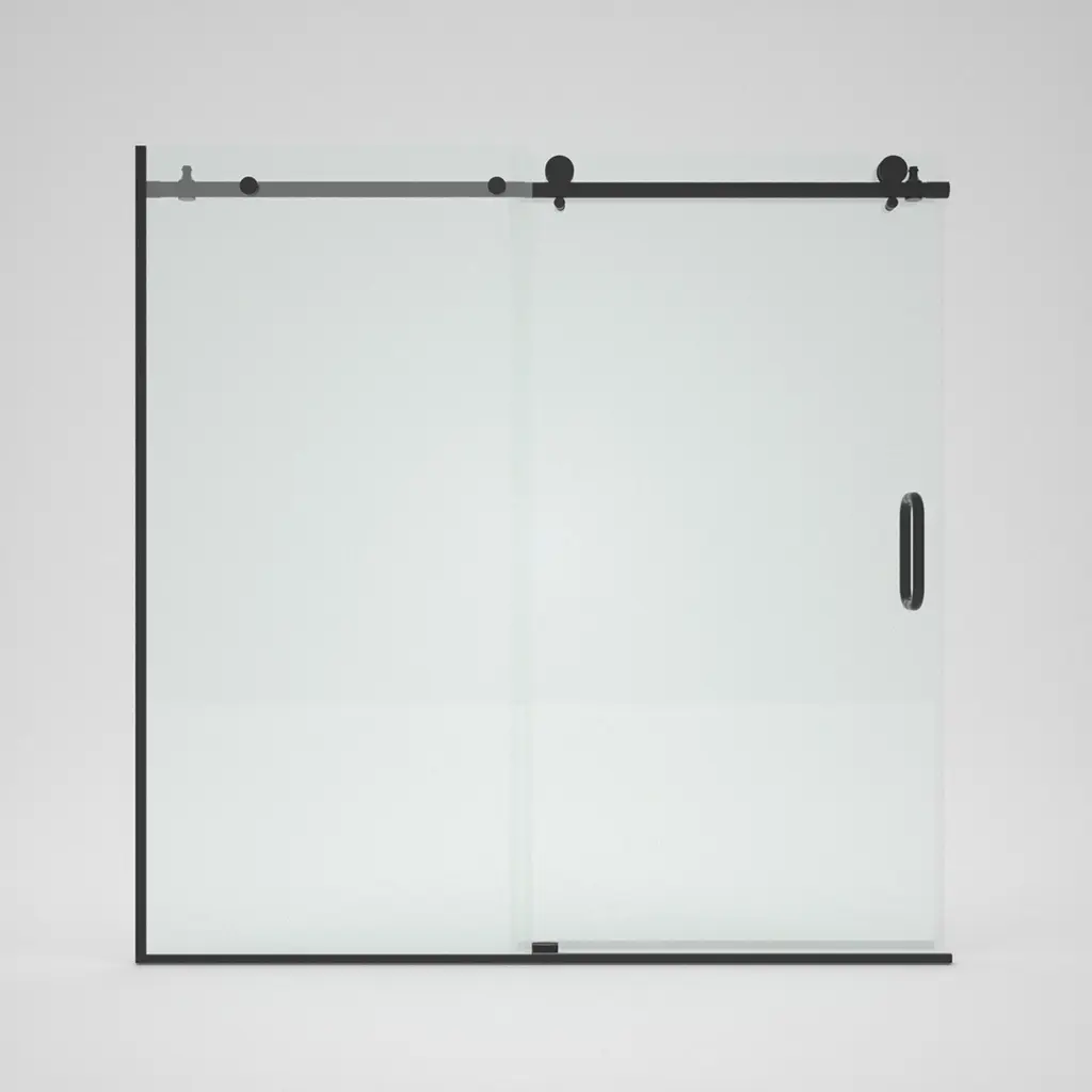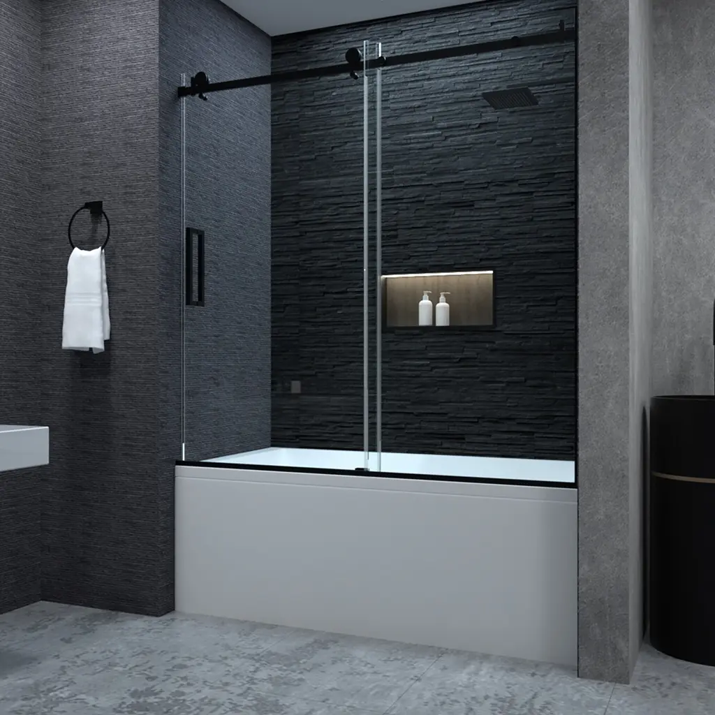 60" X 60" Sliding Frameless Tub Door With Clear Glass - 60" X 60" - Matte Black