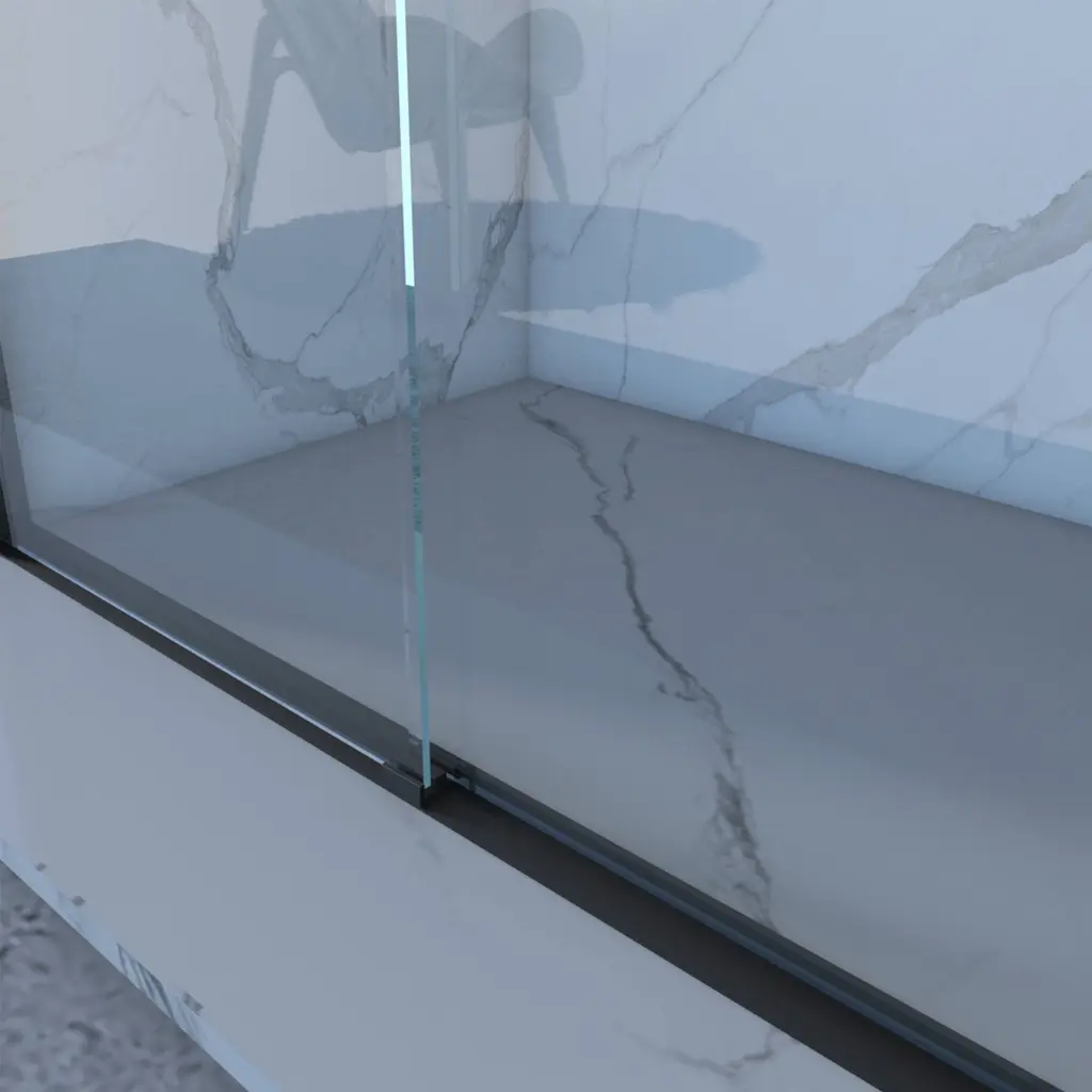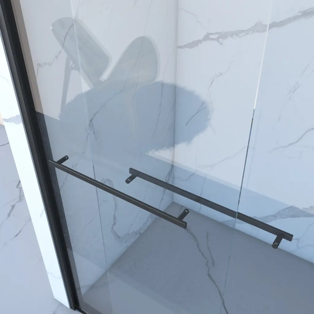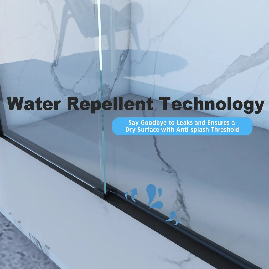 [Humanized Design] This glass shower door 60" width and 70" high, the width can be adjusted from 56" to 60" by cutting guide. Please Note: All measurements must be taken after walls are finished (tile, back walls, etc.)[Safe Fashion Highlight] Made of 5/16" (8mm) SGCC & ANSI certified tempered safety glass,which is durable and unbreakable,also not easy shatter.[High-quality Materials] Aluminum frame and stainless steel handle are corrosion-resistant and anti-rust, ensuring durability even in wet environments.[Waterproof Design] Shower door effectively prevent water from leaking out of the shower when you are taking shower. Shower door with protective glass coating that repels water stains, insulates all water inside the shower and keeps outside always in tidy and clean.[Easy to Install] Reversible installation for right or left, step-by-step instructions and hardware included for easy installation, the width of the door can be adjusted by cutting guide.[Strong Package] Our shower glass door use a sturdy honeycomb box to transport. We have upgraded and enhanced the honeycomb box much more durable to ensure that our products will reach you in perfect condition.(package does not include shower base).
