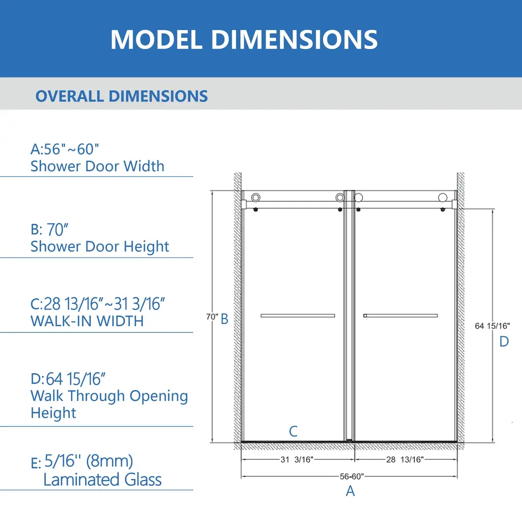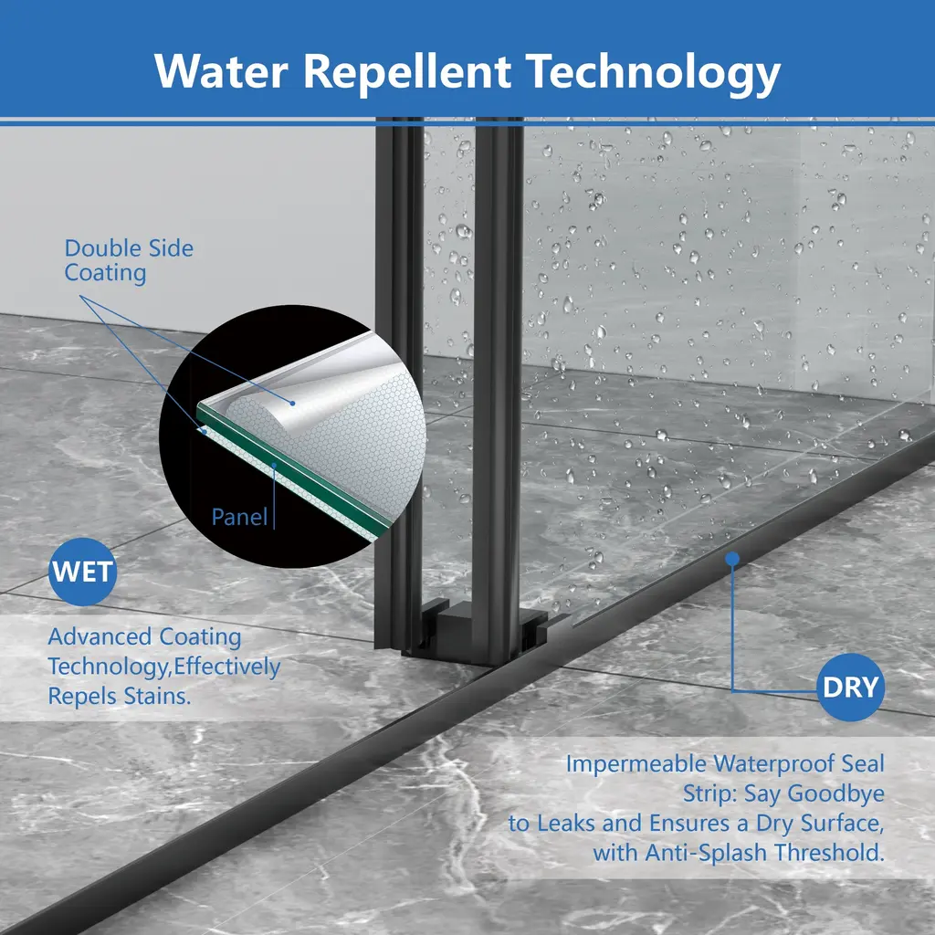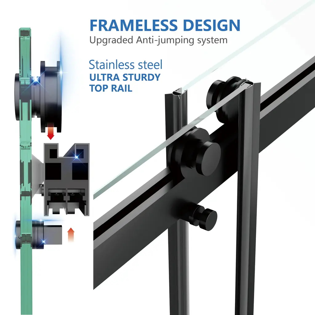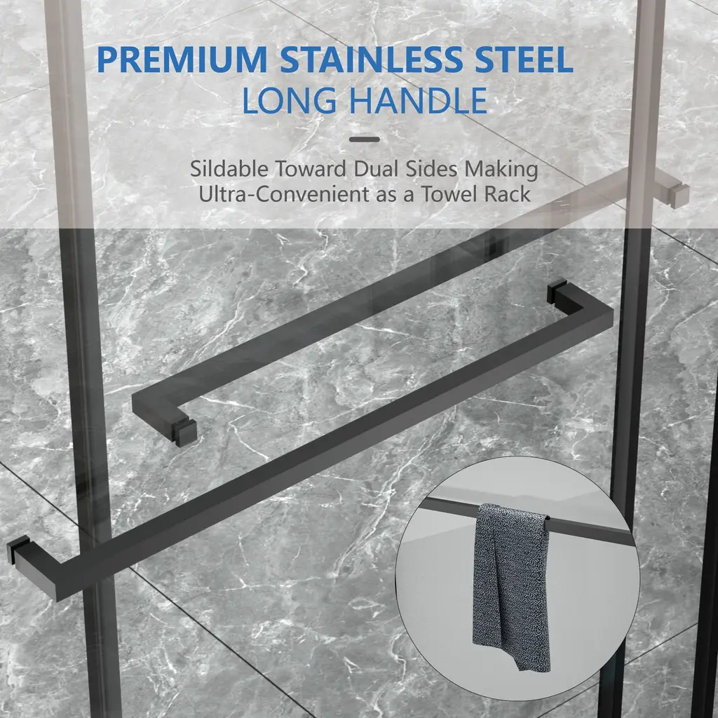 Stainless steel frame and handle are corrosion-resistant and anti-rust, ensuring durability even in wet environments.Enjoy seamless access with our Double Sliding Shower Doors equipped with buffer, guaranteeing smooth and effortless operation for added convenience. Reversible installation for right or left, step-by-step instructions and hardware included for easy installation, the width of the door can be adjusted by cutting guide.The shower door is designed with sleek simple lines and concealed screw installation, which add more modern elements to your bathroom.