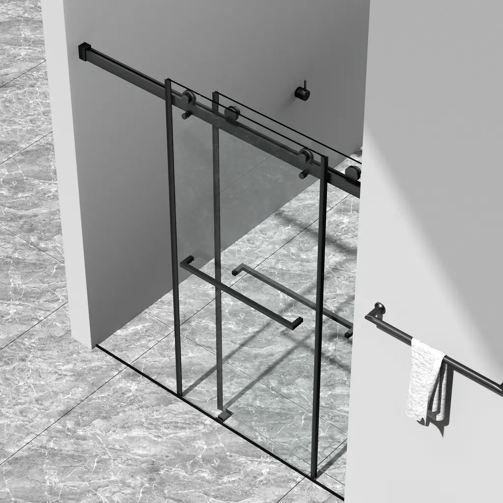 60" X 70" Sliding Frameless Shower Door With Clear Glass - 60" X 70" - Matte Black