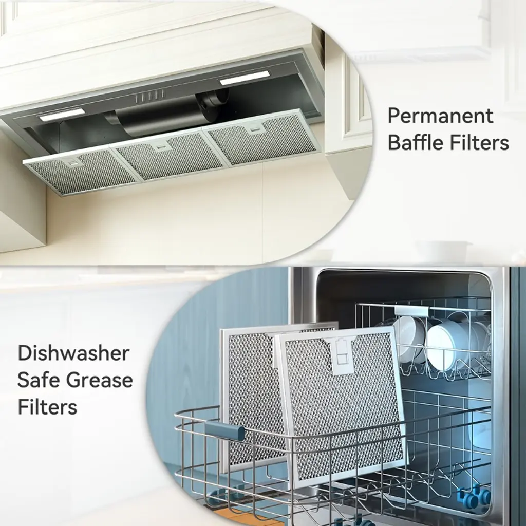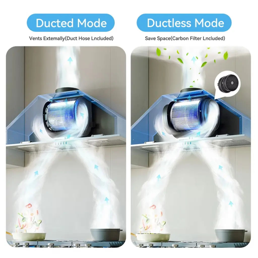 Transform your kitchen with this high-efficiency range hood, engineered to deliver powerful suction, quiet operation, and easy-to-use features for an enhanced cooking experience. Built to capture smoke, grease, and odors, it helps maintain a fresh and clean kitchen environment while improving your cooking atmosphere. Whether you're searing, simmering, or boiling, this range hood ensures your kitchen stays comfortable and free from unwanted odors.