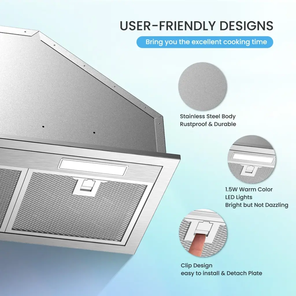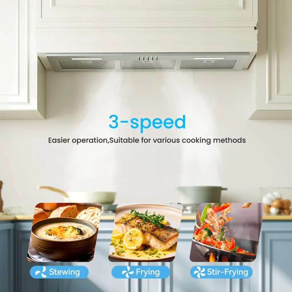 Transform your kitchen with this high-efficiency range hood, engineered to deliver powerful suction, quiet operation, and easy-to-use features for an enhanced cooking experience. Built to capture smoke, grease, and odors, it helps maintain a fresh and clean kitchen environment while improving your cooking atmosphere. Whether you're searing, simmering, or boiling, this range hood ensures your kitchen stays comfortable and free from unwanted odors.