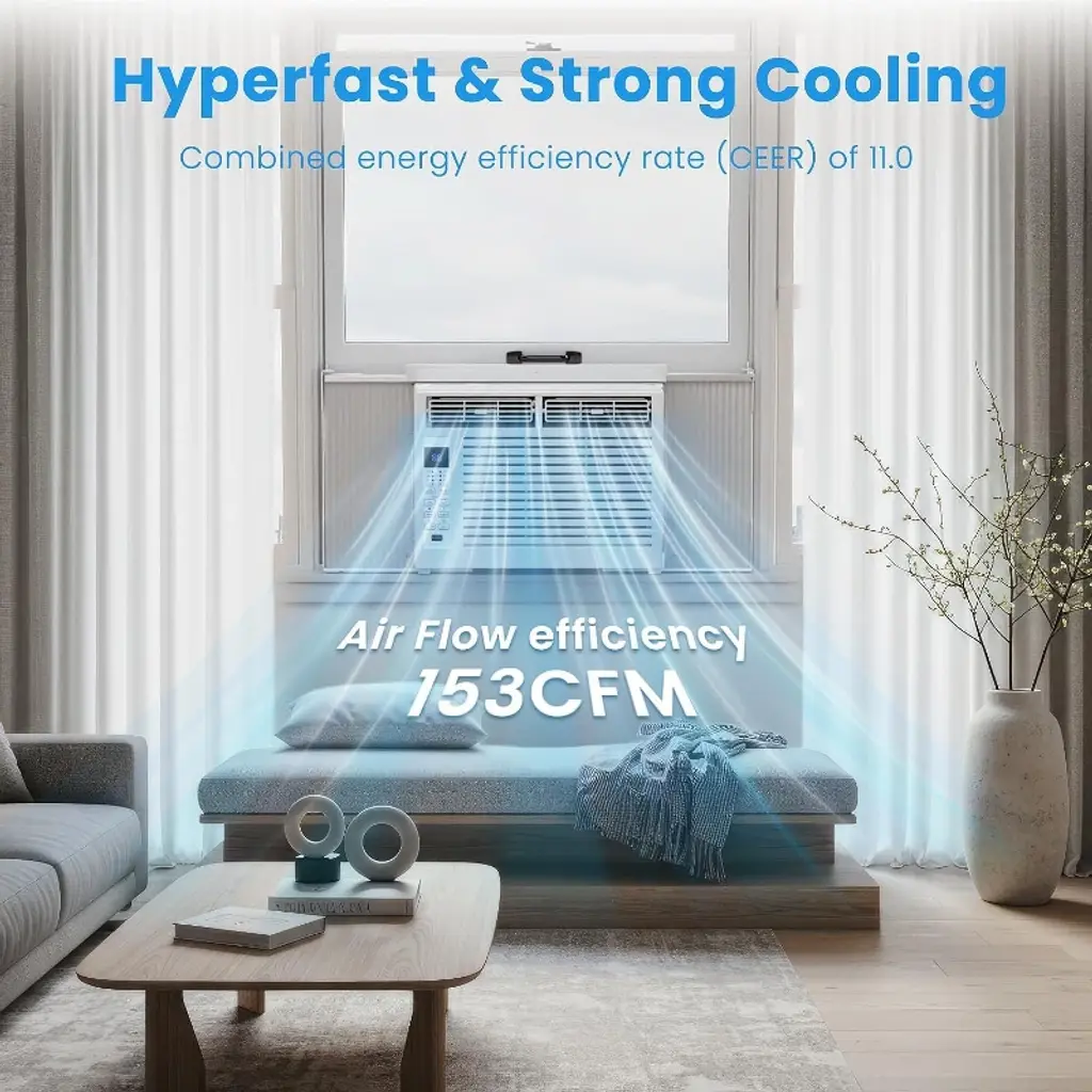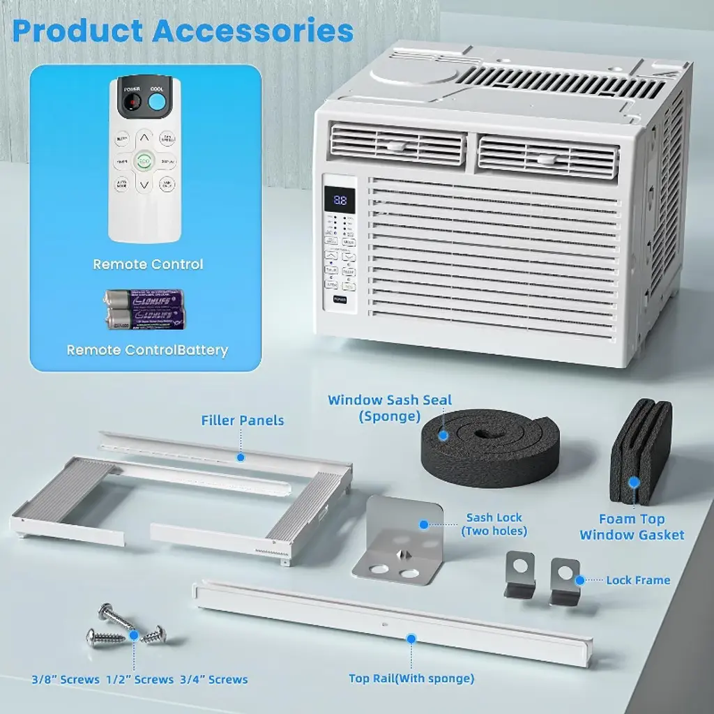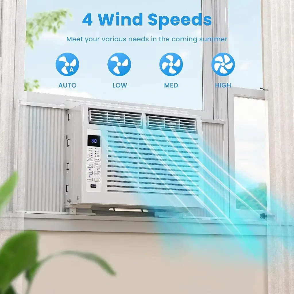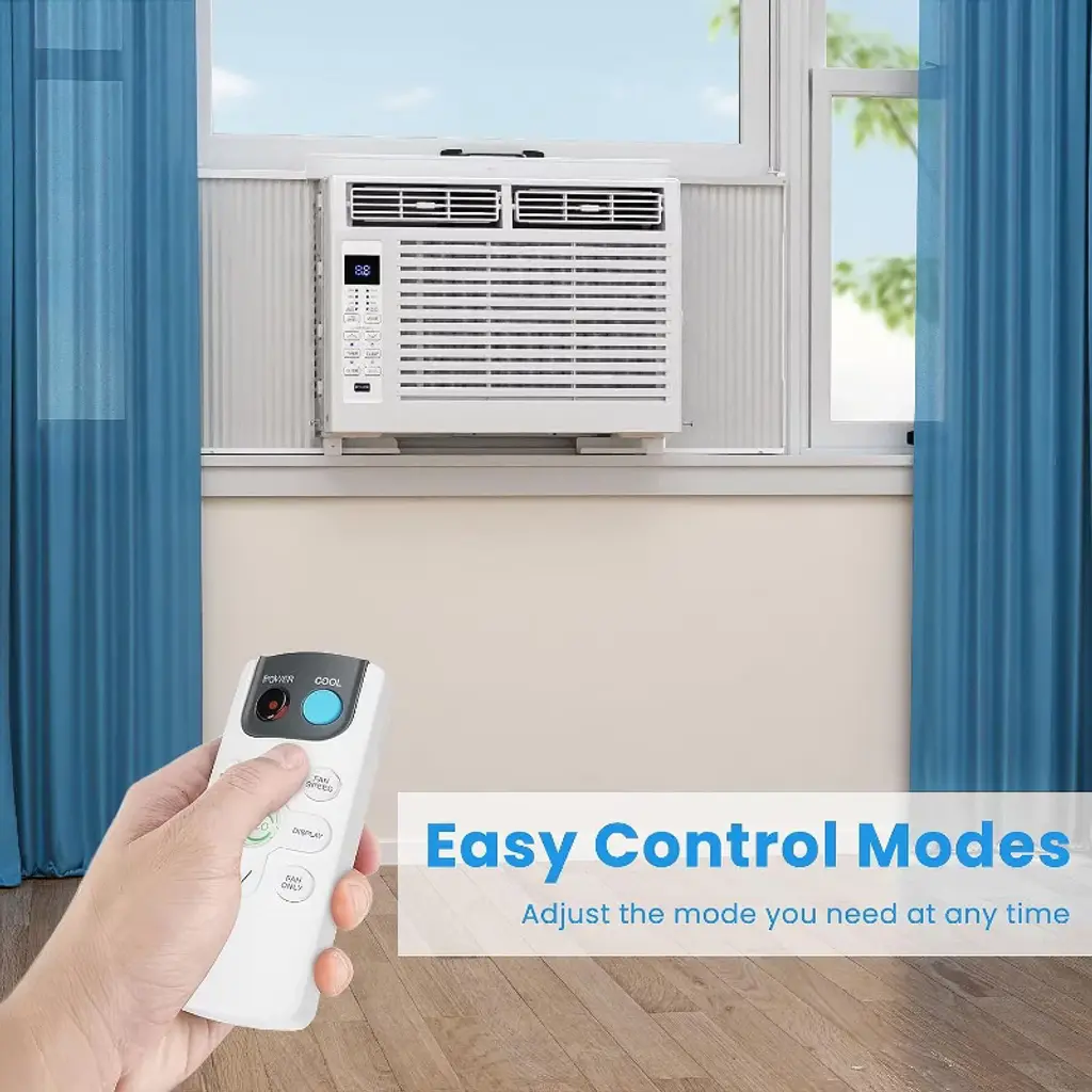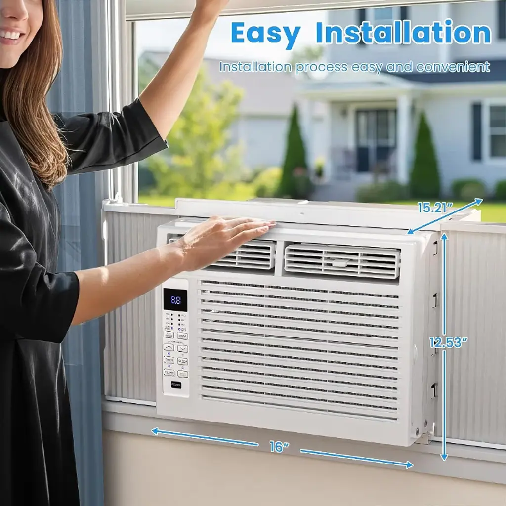 Stay cool effortlessly with this compact yet powerful 6,000 BTU window AC, designed to chill rooms up to 250 sq. ft. in minutes—perfect for bedrooms, offices, or small living spaces! With 6 versatile modes and 4 fan speeds, customize your comfort for any occasion, while the energy-efficient design (CEER 11.0) keeps bills low and cooling performance high. Control temps (61°F–88°F) with ease using the LED display or remote, featuring handy options like Sleep Mode, ECO Mode, and a 24-hour timer. Enjoy near-silent operation at just 50 dBA, so you can sleep, work, or relax without disruptive noise. Maintenance is a breeze with a removable, washable filter that keeps air fresh and clean. Plus, installation is quick and hassle-free—just fit it into your window frame with the included panels, and you're ready to beat the heat! Upgrade to a cooler, quieter, and smarter home today!