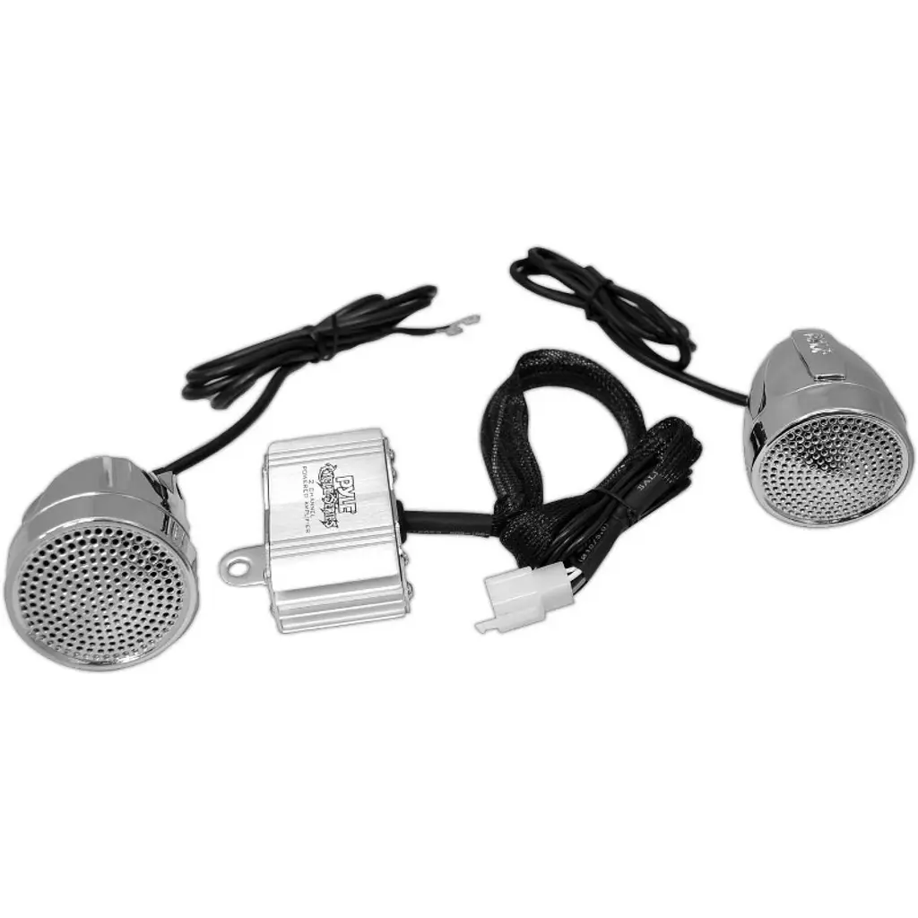 Take your outdoor adventures to the next level with the Pyle 600W Motorcycle/ATV/Snowmobile Amplifier and Weatherproof Speaker System. This powerful system features two 2.25-inch bullet-style speakers with a durable die-cast aluminum structure, designed to withstand the elements. The amplifier delivers 300 watts of power per channel, ensuring your music sounds crisp and clear even in rugged environments. Easily connect your MP3 player or iPod via the 3.5mm jack, and keep your devices charged with the USB charging plug. The system includes easy-to-install handlebar mounting hardware, giving you total control over your music while riding. Whether you're cruising on your bike or tackling tough terrain, Pyle's weatherproof speakers ensure a high-quality audio experience, rain or shine.