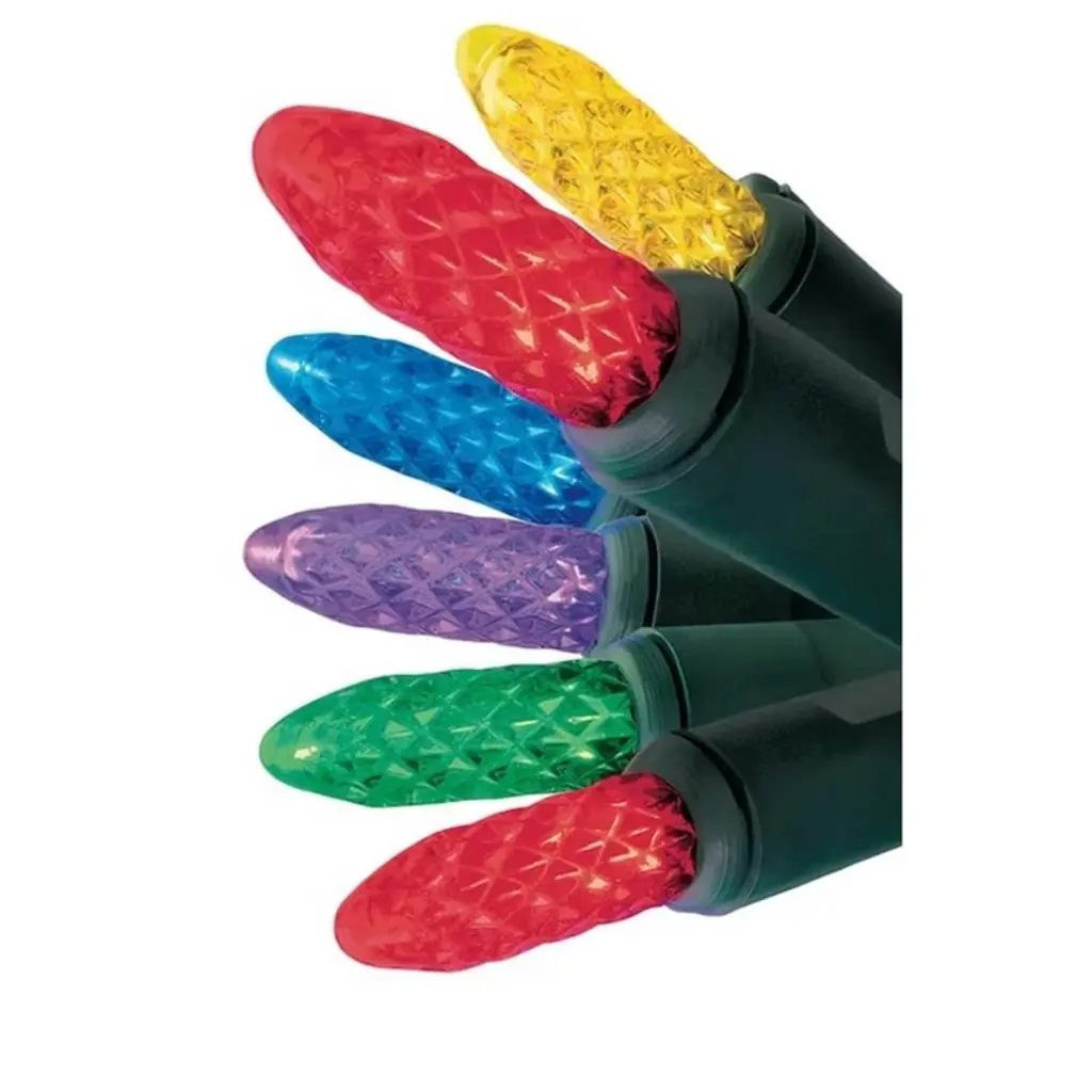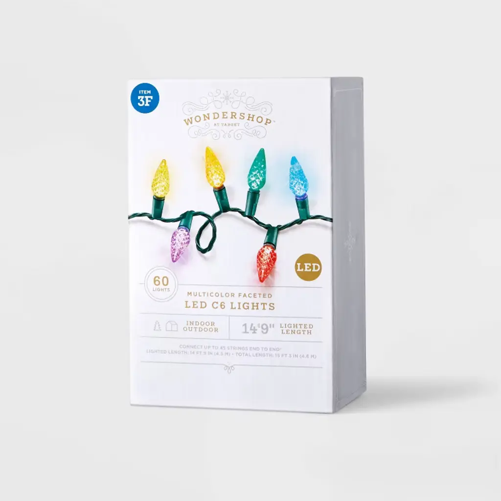 Light up any indoor or outdoor space with this 60-Count of LED C6 Faceted String Lights with Green Wire from Wondershop™. This string of decorative lights features a green wire that suspends 60 LED bulbs with an attractive diamond-faceted finish. This fun lighting accessory is suitable for indoor and outdoor use, and it allows you to connect up to 45 strings end-to-end. Simply drape the lights on your front door, tree, deck, balcony or mantel.Wondershop™: Welcome to the Wondershop.