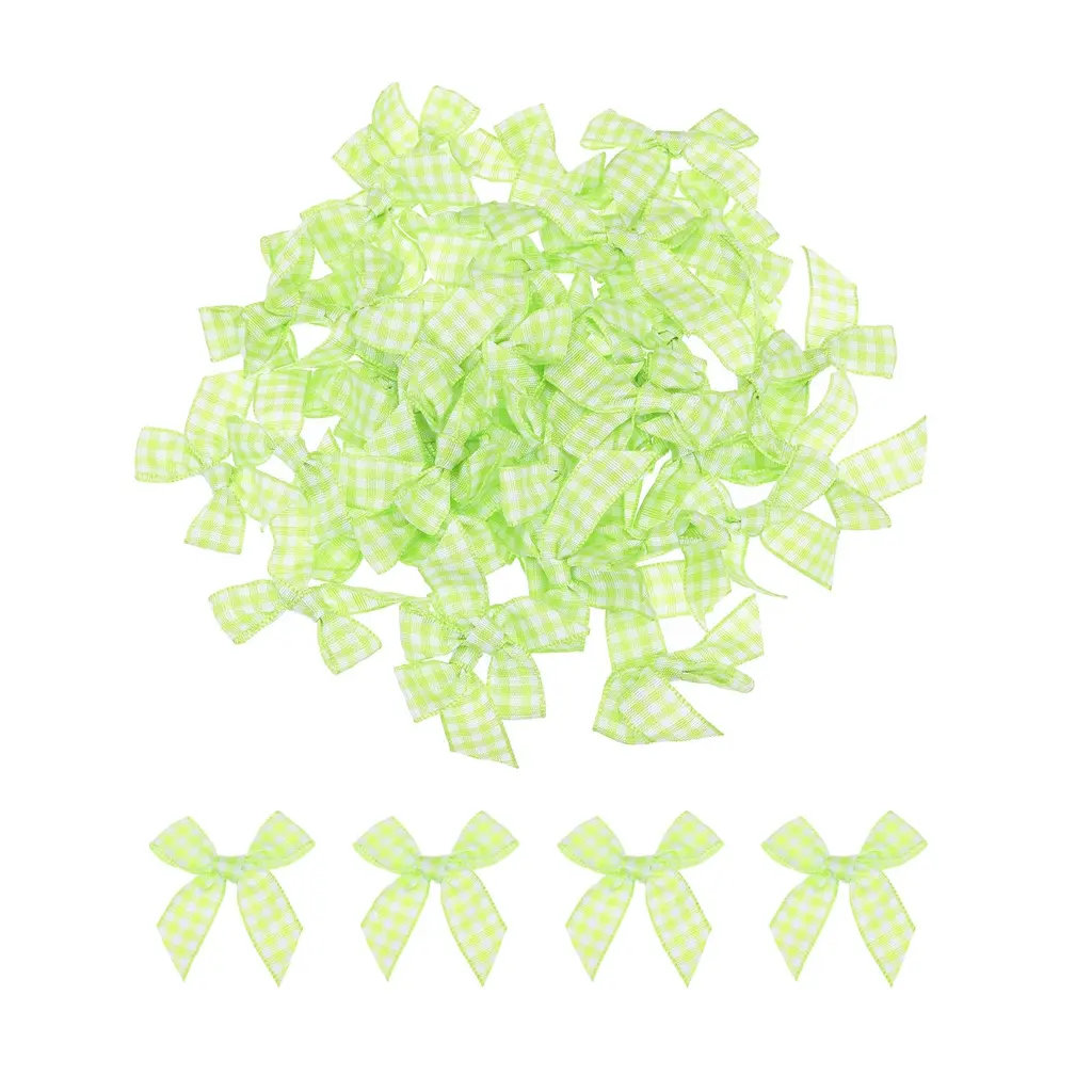 What is this?These ribbon bows are mostly used in the hemming and decoration of leather goods, bags, sleeping bags, tents, and clothing. Because polyester ribbon is soft, they are mostly used for the hemming of softer fabrics.What will I get?The Mini Ribbon Bow, we provide here, is in size of:Material: PolyesterColor: Light Green and WhiteDimension: 1.65 x 1.54 inch (W*H)In the package of: 60 x Mini Ribbon BowsAre there any advantages of the product?Polyester material, fine texture, high washing fastness, no fading, smooth and wrinkle-resistant, flexible to the touch.The product is bright in color, fashionable and new in design, and can be used on many occasions. It is suitable for hair accessories, clothing, Christmas gifts, baking decorations, gift box packaging, hotel decorations, wedding decorations, flower packaging, birthday arrangements, etc.How to use it?1. Choose the color of the Mini Ribbon Bow that matches your project or gift wrapping paper. 2. Use twist ties (not included here) or or glue to secure the mini ribbon bows to desired surfaces such as gift boxes, cards, or crafts. 3. Adjust the position of the bow if necessary to get the desired look.What should I notice?Manual measurement, please allow +/-3mm errors in size.Please note that there may be a slight color difference between the picture and the actual product, and the color is subject to the actual product received.