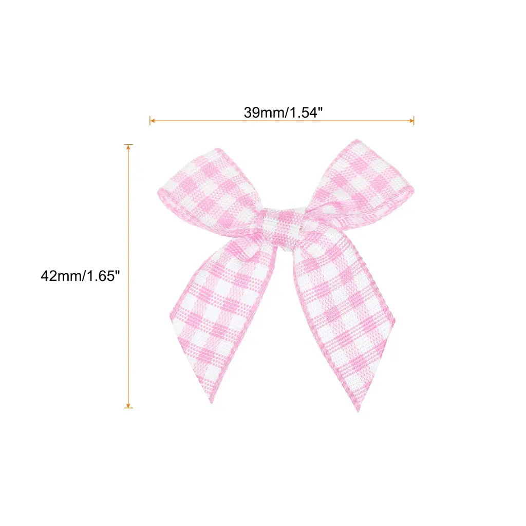 60pcs Mini Gingham Ribbon Bow 1.5" Checkered Fabric Satin - Pink And White