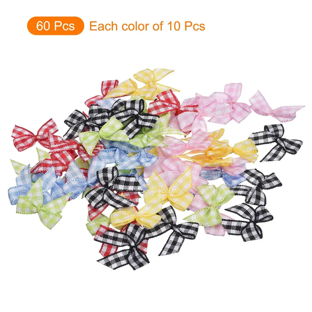 60pcs Mini Gingham Ribbon Bow 1" Checkered Ribbon Bows Multicolor - Multicolor