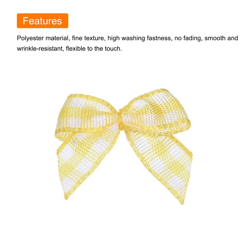 What is this?These ribbon bows are mostly used in the hemming and decoration of leather goods, bags, sleeping bags, tents, and clothing. Because polyester ribbon is soft, they are mostly used for the hemming of softer fabrics.What will I get?The Mini Ribbon Bow, we provide here, is in size of:Material: PolyesterColor: Black and White/Red and White/Green and White/Blue and White/Pink and White/Yellow and WhiteDimension: 1 x 1 inch (W*H)In the package of: 60 x Mini Ribbon Bows, 10pcs for each colorAre there any advantages of the product?Polyester material, fine texture, high washing fastness, no fading, smooth and wrinkle-resistant, flexible to the touch.The product is bright in color, fashionable and new in design, and can be used on many occasions. It is suitable for hair accessories, clothing, Christmas gifts, baking decorations, gift box packaging, hotel decorations, wedding decorations, flower packaging, birthday arrangements, etc.How to use it?1. Choose the color of the Mini Ribbon Bow that matches your project or gift wrapping paper. 2. Use twist ties (not included here) or or glue to secure the mini ribbon bows to desired surfaces such as gift boxes, cards, or crafts. 3. Adjust the position of the bow if necessary to get the desired look.What should I notice?Manual measurement, please allow +/-3mm errors in size.Please note that there may be a slight color difference between the picture and the actual product, and the color is subject to the actual product received.