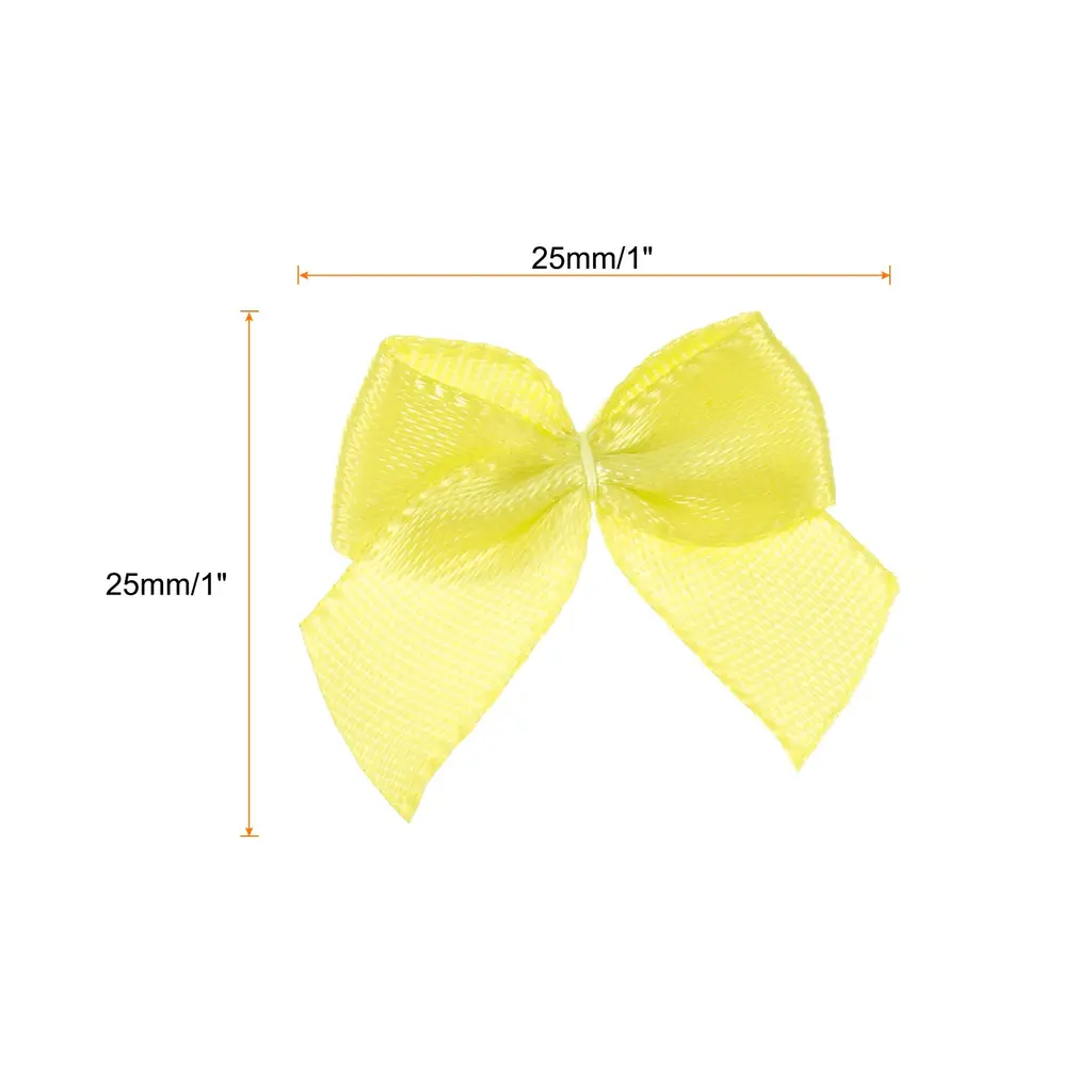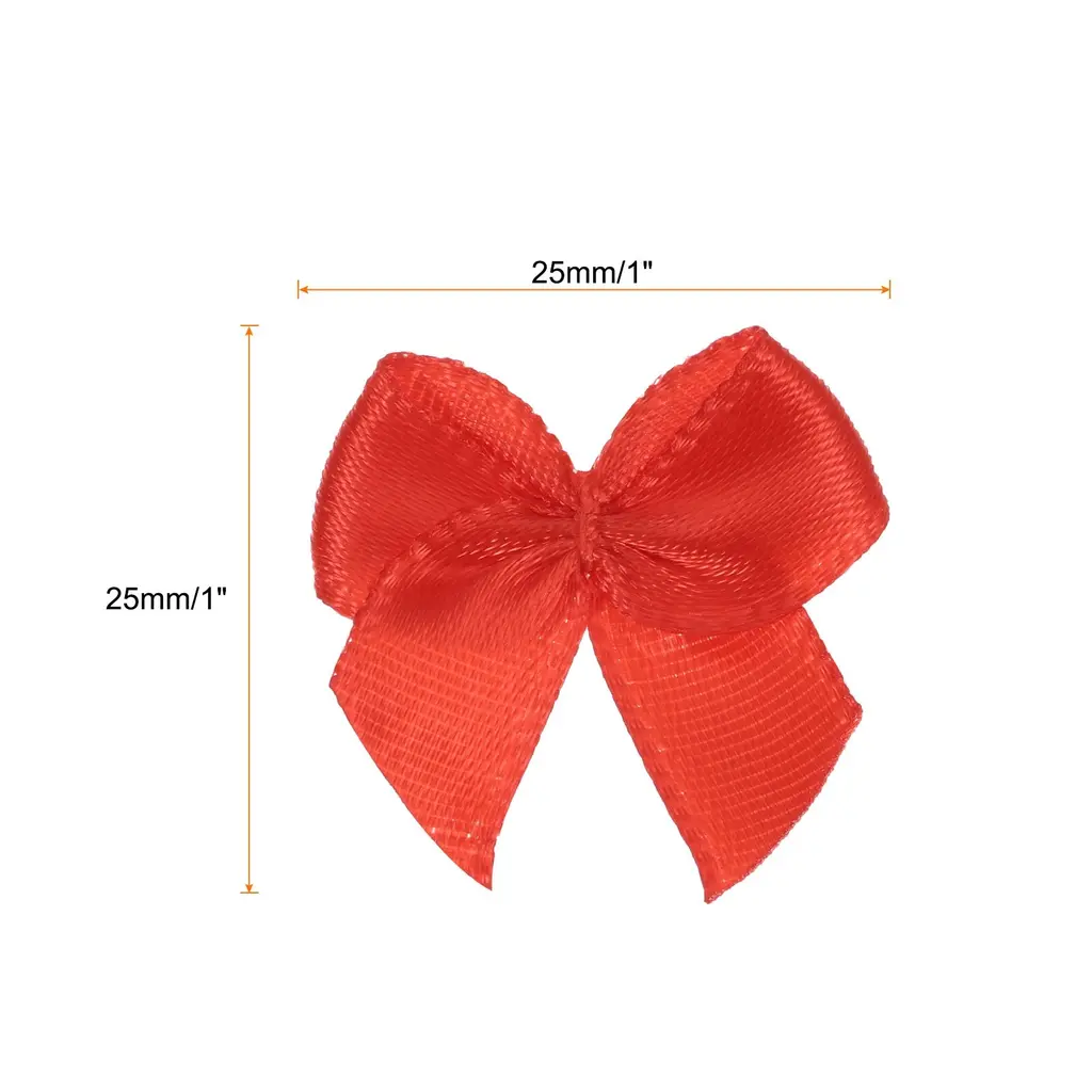 What is this?These ribbon bows are mostly used in the hemming and decoration of leather goods, bags, sleeping bags, tents, and clothing. Because polyester ribbon is soft, they are mostly used for the hemming of softer fabrics.What will I get?The Mini Ribbon Bow, we provide here, is in size of:Material: PolyesterColor: PinkDimension: 1 x 1 inchIn the package of: 60 x Mini Ribbon BowsAre there any advantages of the product?1. Premium polyester material, fine texture, high washing fastness, no fading, smooth and wrinkle-resistant, flexible to the touch.2. The product is bright in color, fashionable and new in design, and can be used on many occasions. It is suitable for hair accessories, clothing, Christmas gifts, baking decorations, gift box packaging, hotel decorations, wedding decorations, flower packaging, birthday arrangements, etc.How to use it?1. Choose the color of the Mini Ribbon Bow that matches your project or gift wrapping paper. 2. Use twist ties (not included here) or or glue to secure the mini ribbon bows to desired surfaces such as gift boxes, cards, or crafts. 3. Adjust the position of the bow if necessary to get the desired look.What should I notice?Manual measurement, please allow slight errors in size.Please note that there may be a slight color difference between the picture and the actual product, and the color is subject to the actual product received.