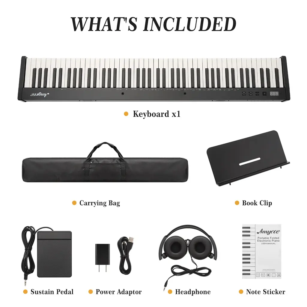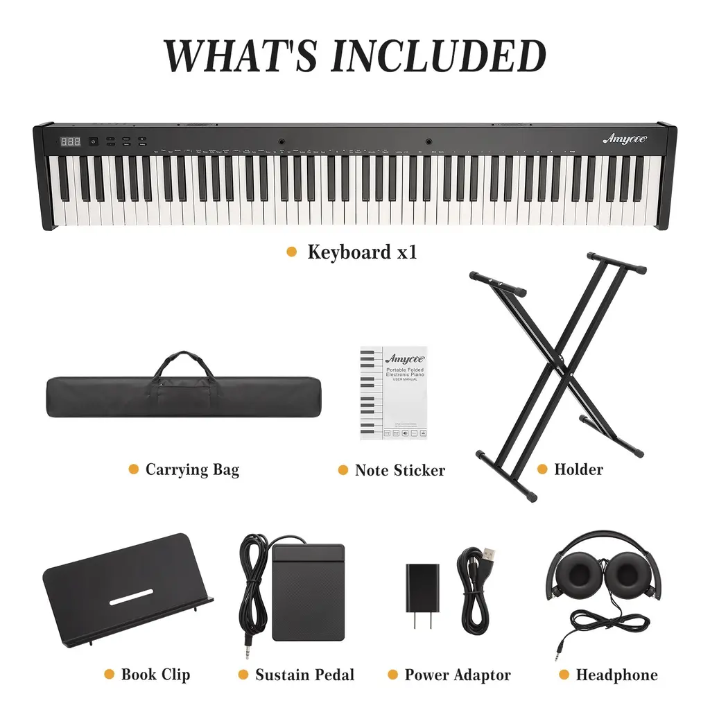 【Multifunctional】: This electronic keyboard features 64-note polyphony, 128 selectable tones, 128 rhythm patterns, and 80 demo songs, equipped with a digital display screen, provide you with more choices to explore the music world. The piano keyboard features play the piano function + automatic accompaniment + teaching + rhythm programming + record playback and other function. 【Perfect for Beginner/Professional】: Compared with other pianos, the function keys of this electric piano have been simplified a lot, more easy to operate, But the functionality has not decreased, and provides detailed instructions to tell beginners how to use the teaching mode, making it easier for beginners to learn. In addition, the "Record" and "Program" functions are designed to record your performance for practice. Follow, one-key and ensemble modes provide more options for beginners. 【Semi-Weighted Keys and Pedal】: Unlike other electronic keyboards, our electronic keyboard piano equipped with 61 semi-weighted keys, providing a more realistic piano key touch; It also comes with a modulation pedal, allowing you to adjust the tone for a softer sound. 【Portable Keyboard Piano】: This keyboard piano can be powered by plug the power adapter into the wall. You can take this compact and lightweight digital piano to any location at home or in the classroom for party performances or family play. Dimensions is 35.4" (L) x 9.1" (W) x 2.8" (H), Weight:8.4LB. 【Perfect Gifts for Birthday or Christmas】: This piano keyboard is a great gift for kids, friends, patients, piano beginners and so on. The person who receives this gift will be thankful and happy. Give it for your favorite person. And we will provide you with 24-hour customer service, and you can contact us anytime if you have any questions. Product information Power Source:Corded Electric Connectivity Technology:Auxiliary Special Features:Portable Number of Keys:61 Skill Level:Beginner Style:Modern Item Weight:6.2 Pounds