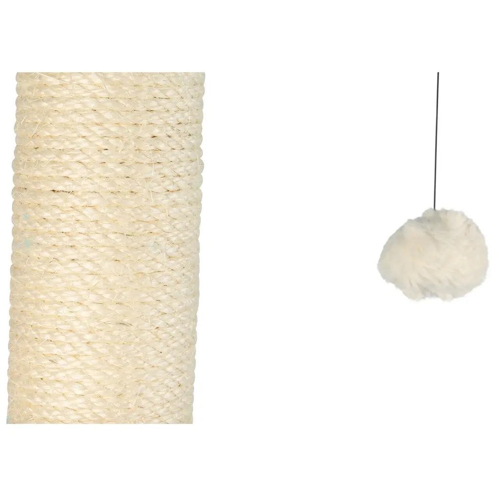 Product Size: Description: Your cats can swing, recline, and romp with Classic cat tree. Cat Daddy Approved by noted cat behaviorist Jackson Galaxy, the 62-inch cat tree boasts a hanging tunnel, hammock, perch, condo, and thick hanging sisal rope. F and B Bullet: Beige with high density faux covering for felines comfort, coverings are permanently adhered to wood structures. Well constructed of 15mm pressed wood material, making it not only thicker but stronger. 100% natural, seasoned sisal rope wraps all posts securely for years of "scratch." Dimensions: Post Diameter: 3.5"; House: 12" x 12"; Base: 26" x 20"; Perch: 14" x 14"; Maximum Holding Weight: 40 lbs.