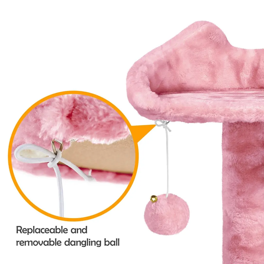 62in Cat Tree Cat Tower, Cat Furniture W/double Cat Condo, Scratching Posts, Multiple Platforms & Balls For Kittens & Cats - Pink