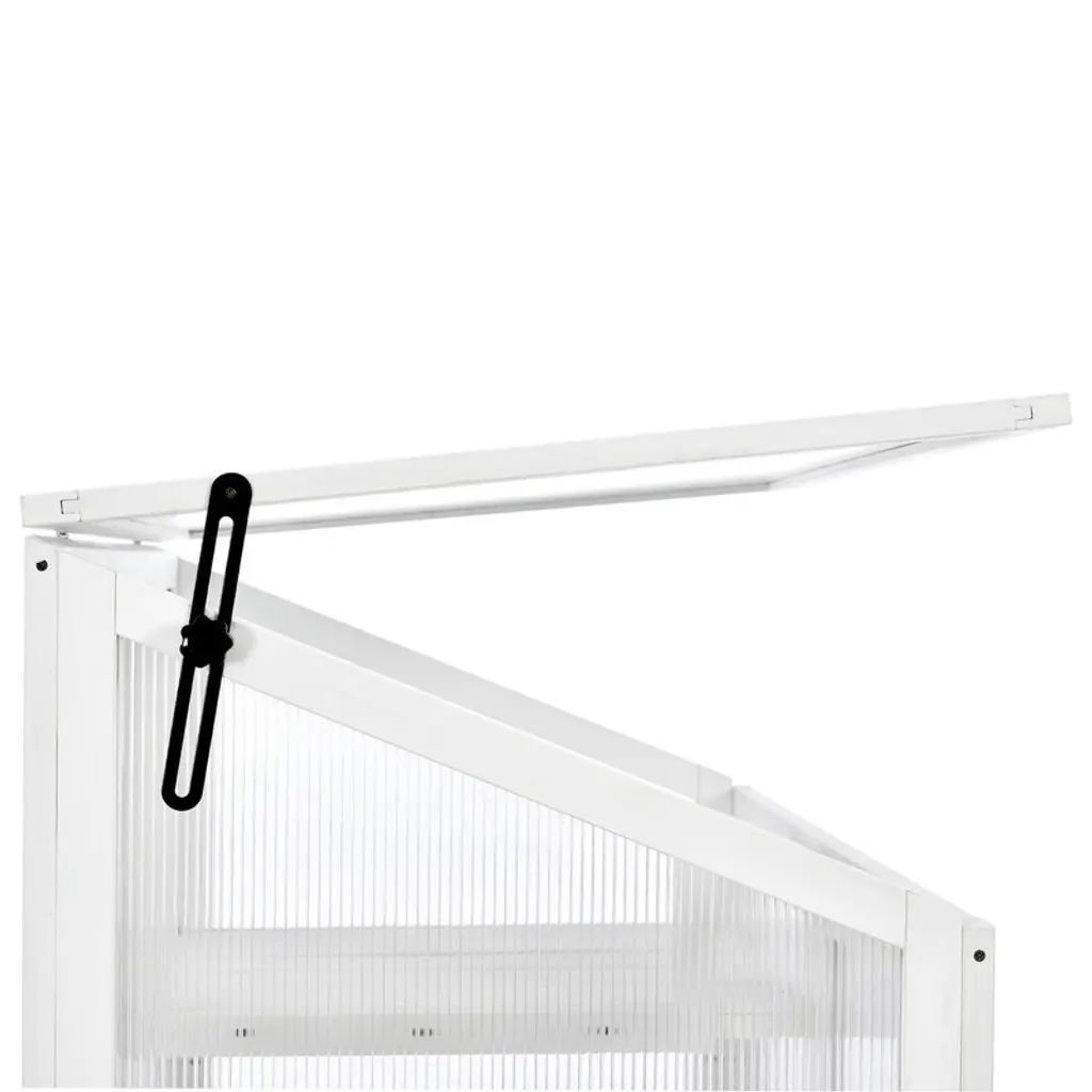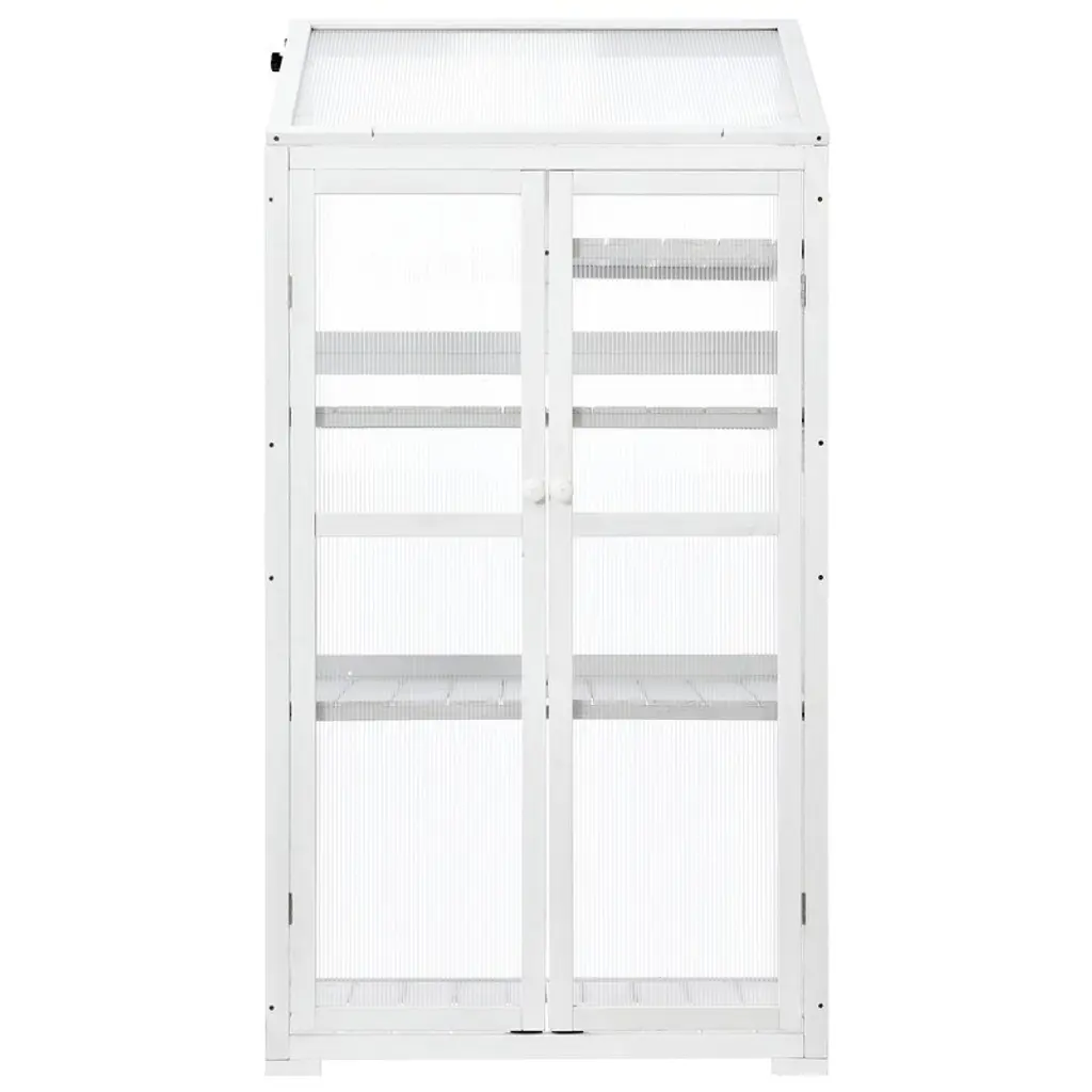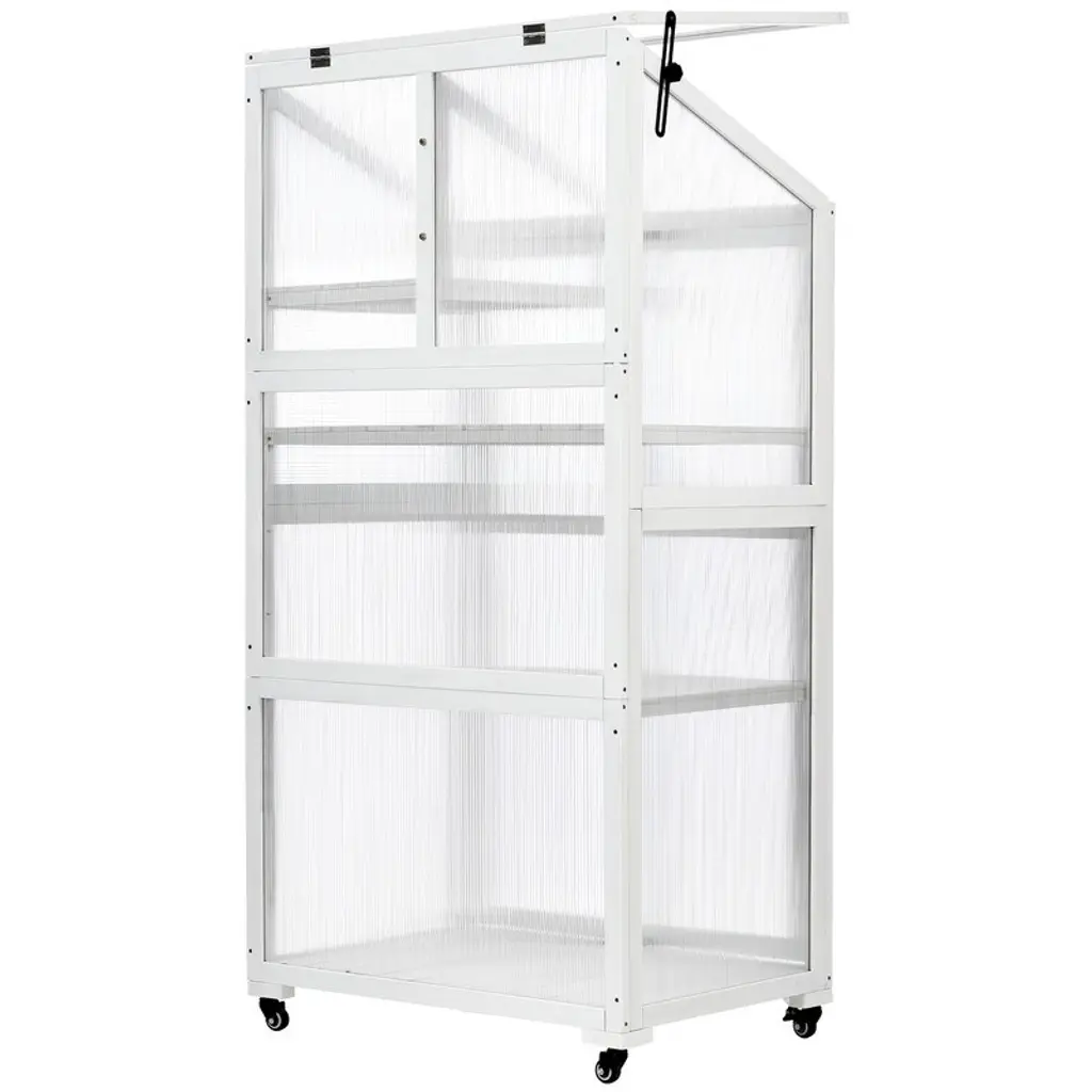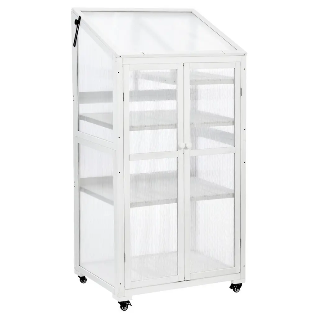 Experience the joy of gardening year-round with this balcony wood greenhouse. Made of sturdy fir wood and protective PC panels, this mini greenhouse is designed to withstand winter coldness and keep your plants safe. With an overall size of 31.5x22.4x62 inches (LXWXH), it provides ample space for your plants without taking up too much room on your balcony. The 3-tier shelves, including 2 adjustable with 6 levels in total, offer versatility for plants of different heights. Plus, with 4 wheels (2 with brakes) and an anti-tipping strap, you can easily move it to any warm spot or secure it in place.Features:Additional Sections:
