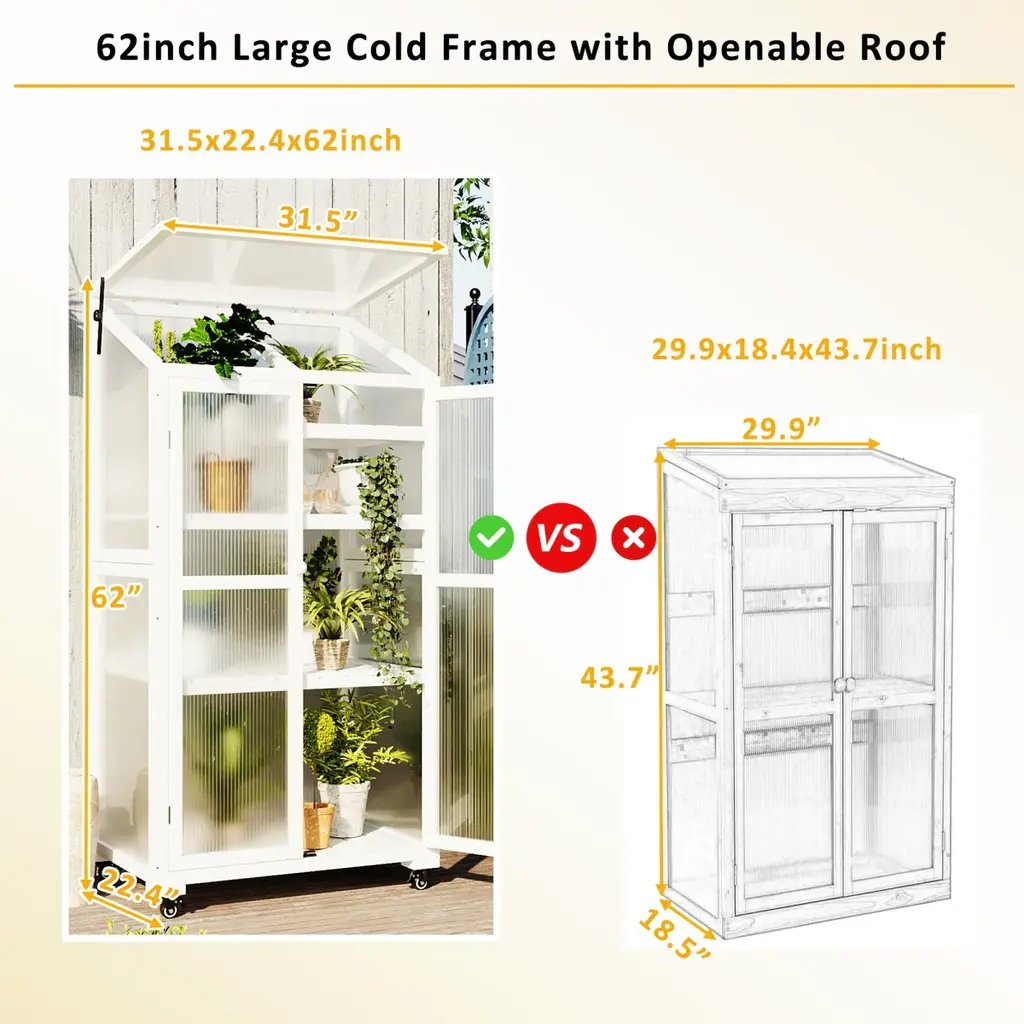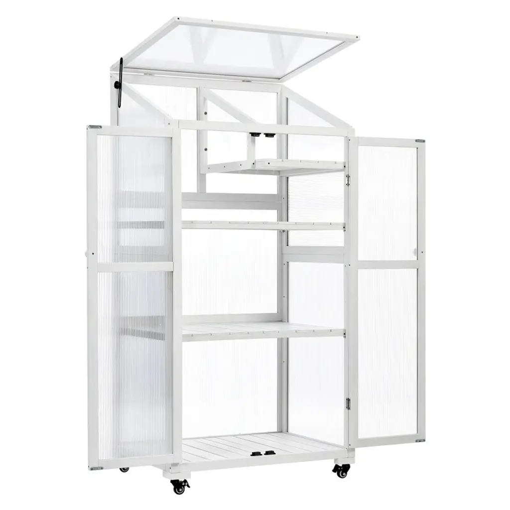 62inch Height Wood Large Greenhouse Balcony Portable Cold Frame With Wheels And Adjustable Shelves - Black