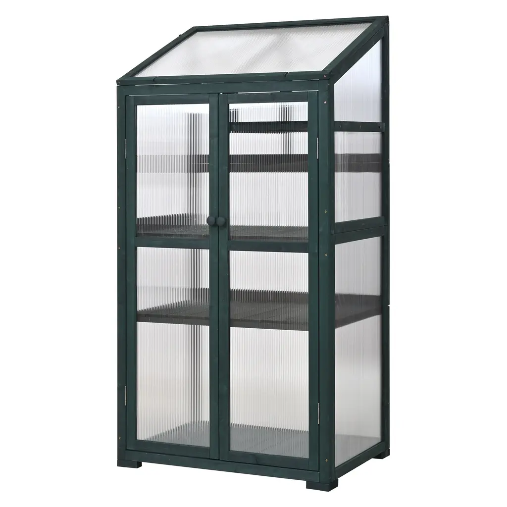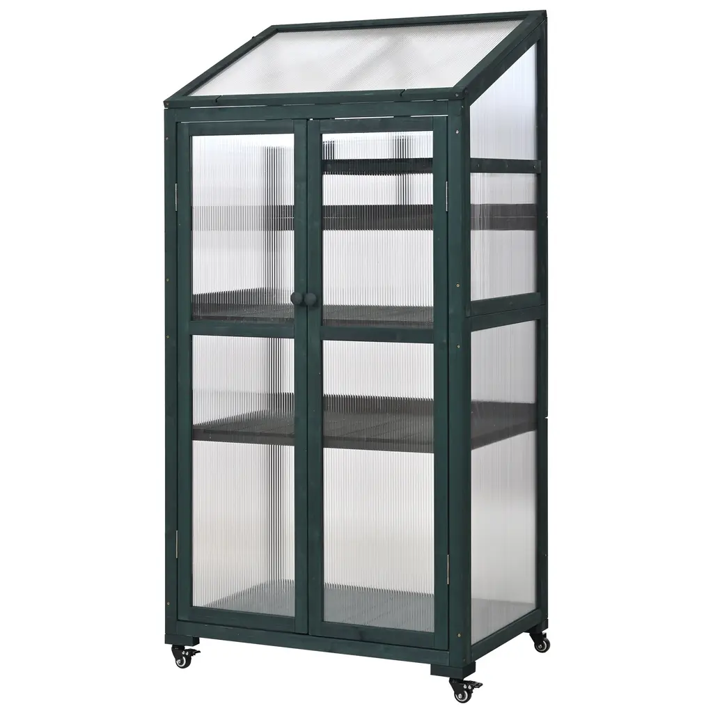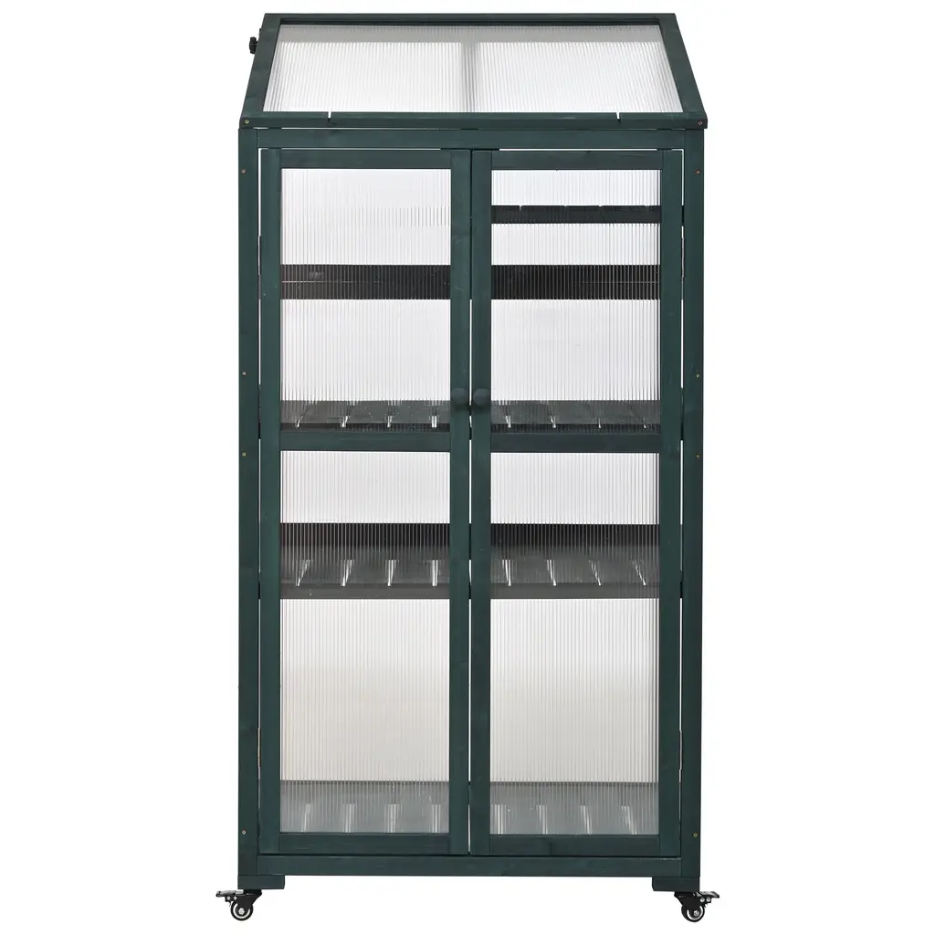 62inch Height Wood Large Greenhouse Balcony Portable Cold Frame With Wheels And Adjustable Shelves - Green