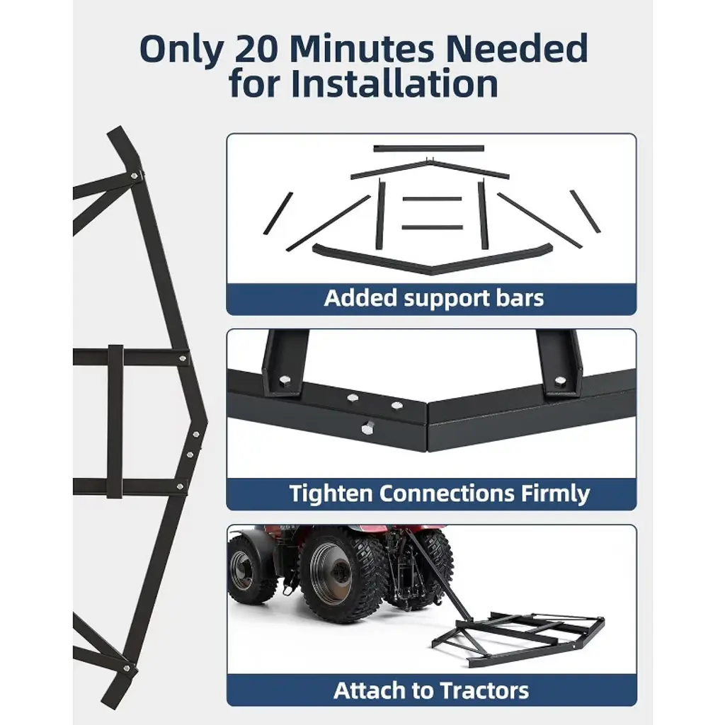 Imagine looking out at your property after a long day, seeing smooth gravel where potholes used to be, and perfectly prepped soil ready for planting. This 66" drag harrow makes that vision a reality with less effort than you'd expect. The secret lies in its smart design - those two adjustable bars let you control exactly how deep and aggressive you want to work, whether you're just touching up your driveway or prepping a new garden plot. Farmers will appreciate how it maintains pastures with less fuel. Homeowners love how it keeps driveways smooth with minimal effort. The universal hitch means it works with whatever equipment you already own, from compact tractors to side-by-sides. And when you're done? It stores flat against your barn wall instead of taking up precious floor space. This isn't just another implement - it's the smarter way to maintain your property season after season. The time you save on each project adds up, giving you more hours to enjoy the land you've worked so hard to improve. Whether you're prepping for spring planting or smoothing out winter damage, this harrow delivers professional results without professional headaches. Simple, effective, and built to last - exactly what your property deserves.