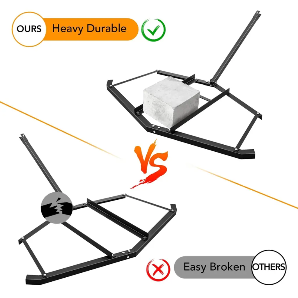Driveway Drag Grader 66 Inch: Landscape Leveling Harrow with Adjustable Bars for ATV, UTV, TractorProduct OverviewAchieve professional-grade leveling with the TROPOW 66-Inch Driveway Drag Grader, designed for efficient landscape smoothing and field maintenance. Constructed from heavy-duty alloy steel with a powder-coated black finish, this all-welded harrow features two adjustable bars for weight customization and depth control. Compatible with ATVs, UTVs, garden tractors, and utility tractors, it simplifies driveway grading, gravel spreading, and soil smoothing with minimal effort. The rust-resistant design ensures longevity, making it ideal for homeowners, farmers, and landscapers.Key Features & Benefits Heavy-Duty Steel Construction All-welded alloy steel frame provides maximum strength and resistance to bending under stress. Powder-coated black finish enhances rust resistance and durability in outdoor conditions. Adjustable Weight Bars Two adjustable levers allow placement of up to 50 lbs of additional weight (e.g., firebricks) for deeper grading and furrow creation. Customizable pressure adapts to loose dirt, gravel, or uneven terrain. Efficient 66-Inch Working Width Covers broad paths in a single pass, reducing time spent on large areas like driveways, fields, or gardens. Fixed frame design ensures consistent grading without skipping or uneven results. Universal Vehicle Compatibility Easily attaches to ATVs, UTVs, garden tractors, and utility tractors without additional accessories. Simple hitch connection enables quick setup and removal. Versatile Applications Levels driveways (gravel, dirt), yards, pastures, and agricultural fields. Breaks up soil clumps, spreads mulch, and prepares seedbeds for planting. Technical Specifications Brand: TROPOW Material: Alloy Steel (Frame), Rubber (Grip) Finish: Powder-Coated (Black) Working Width: 66 inches Weight Capacity: Supports up to 50 lbs of added weight Handle Material: Alloy Steel with Rubber Grip Compatibility: ATVs, UTVs, Garden Tractors, Utility Tractors Special Features: Adjustable Bars, Rust-Resistant Coating Included Components: Drag Grader Harrow