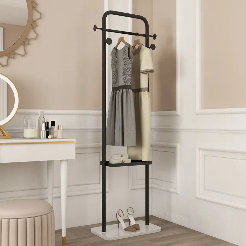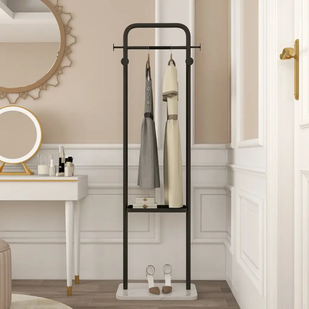 66" Modern Freestanding Rail Cloth Rack With Marble Base