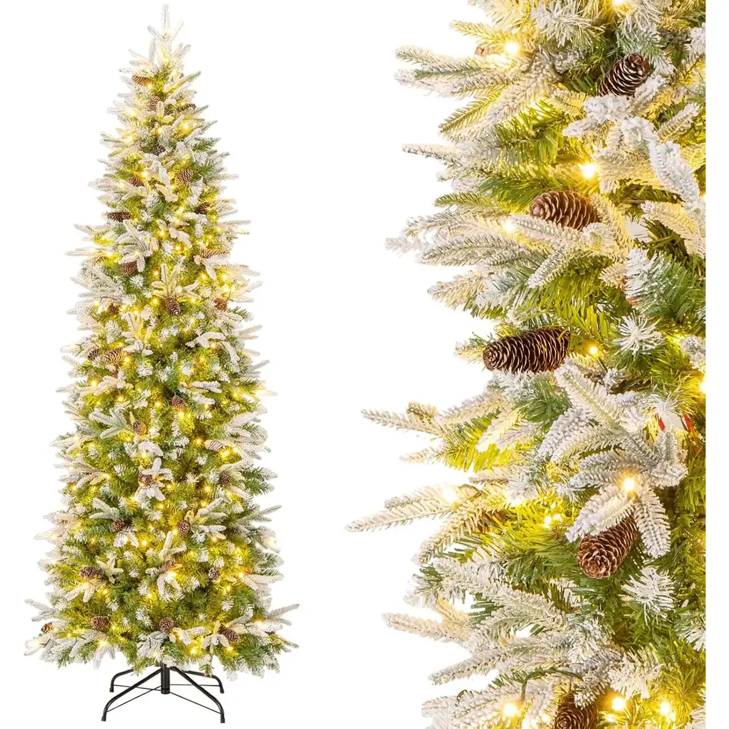 6/7.5/9 Ft Pre-Lit Pencil Christmas Tree Snow Flocked Artificial Tree - 6 Foot