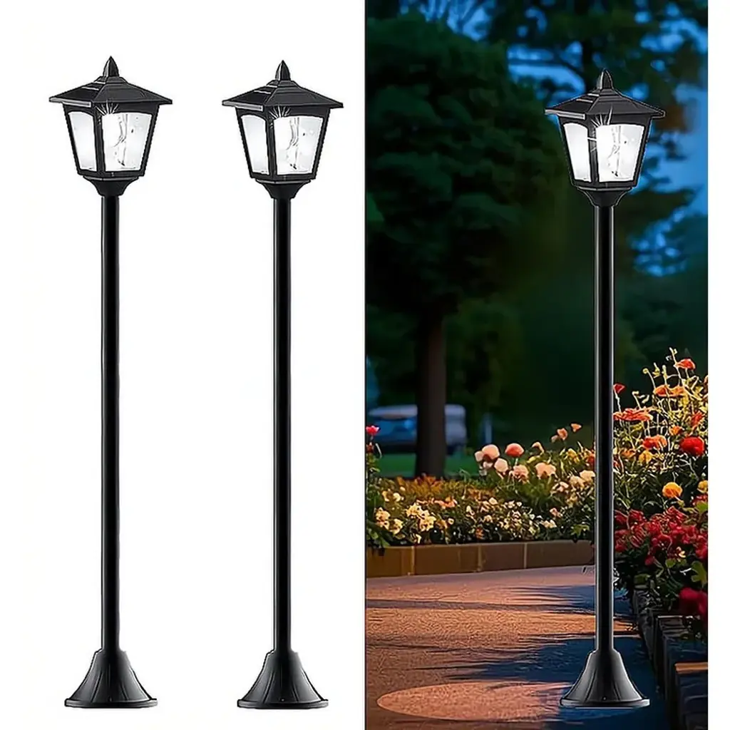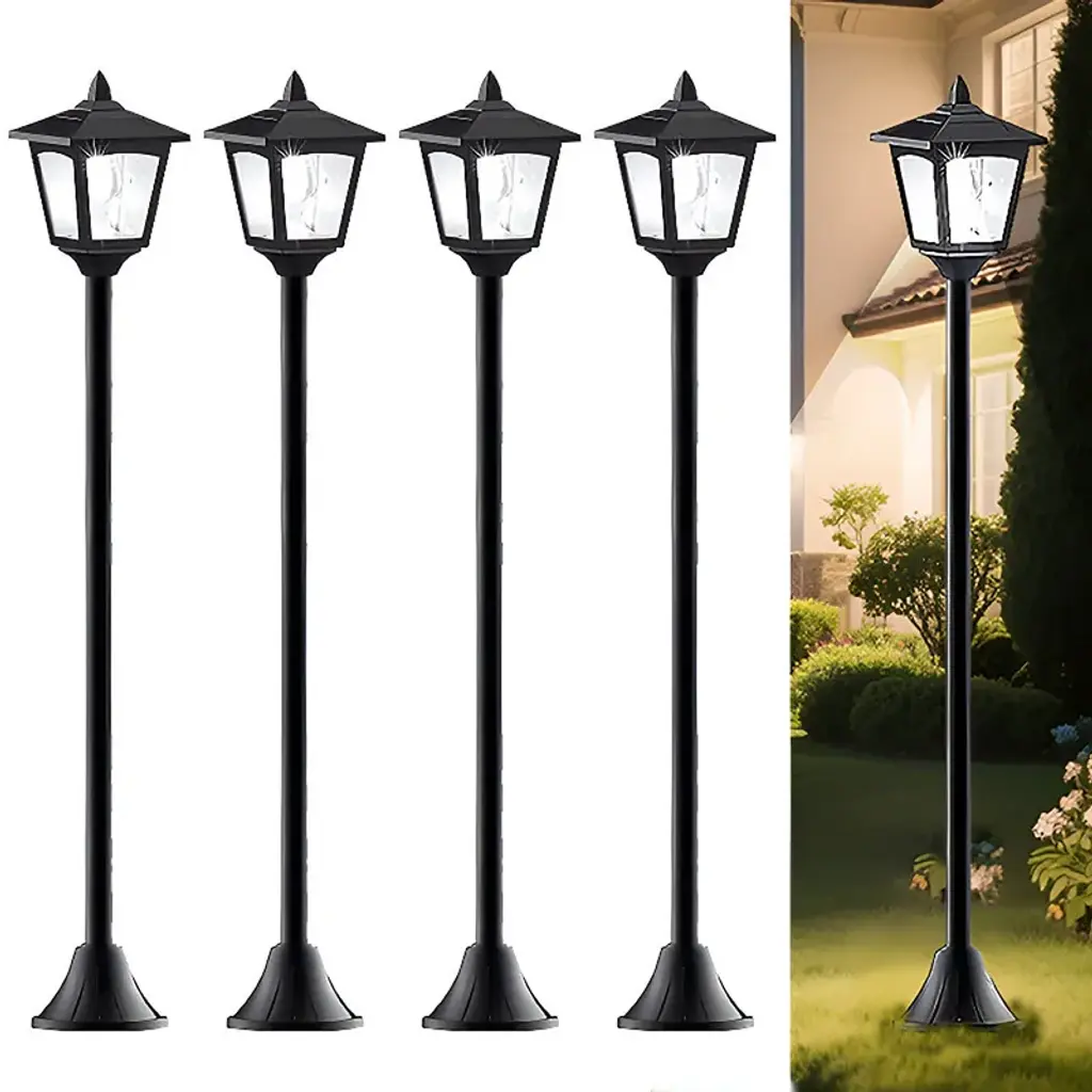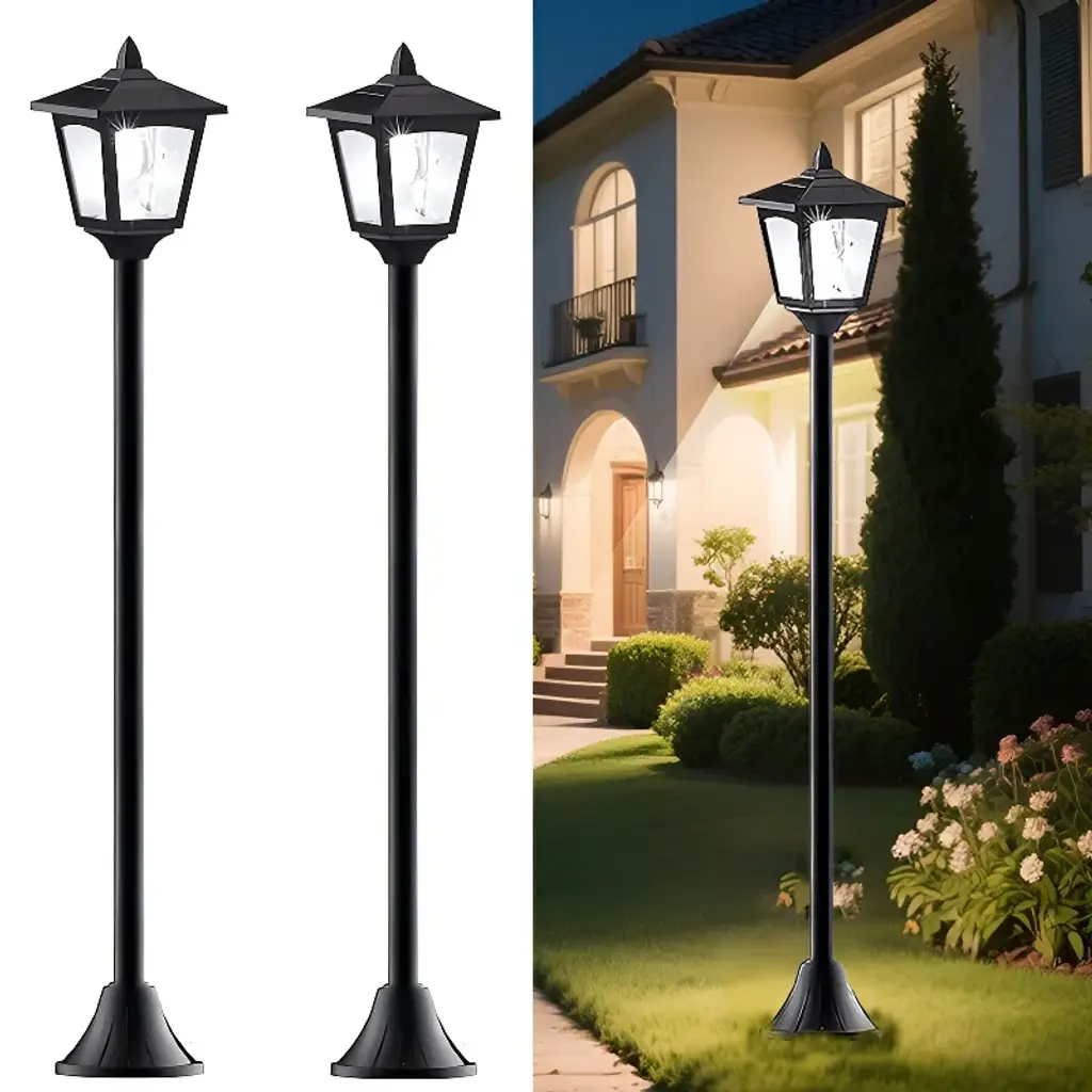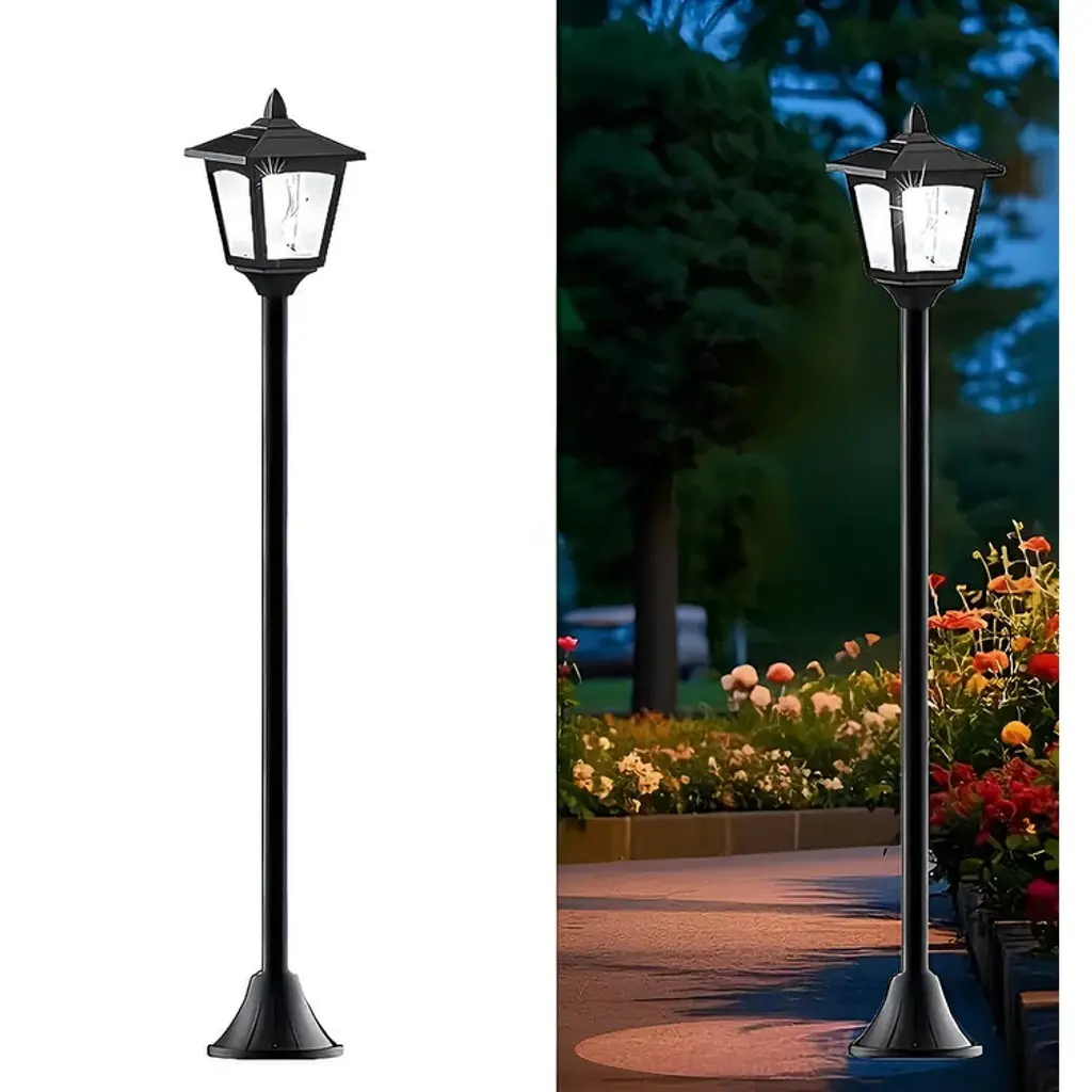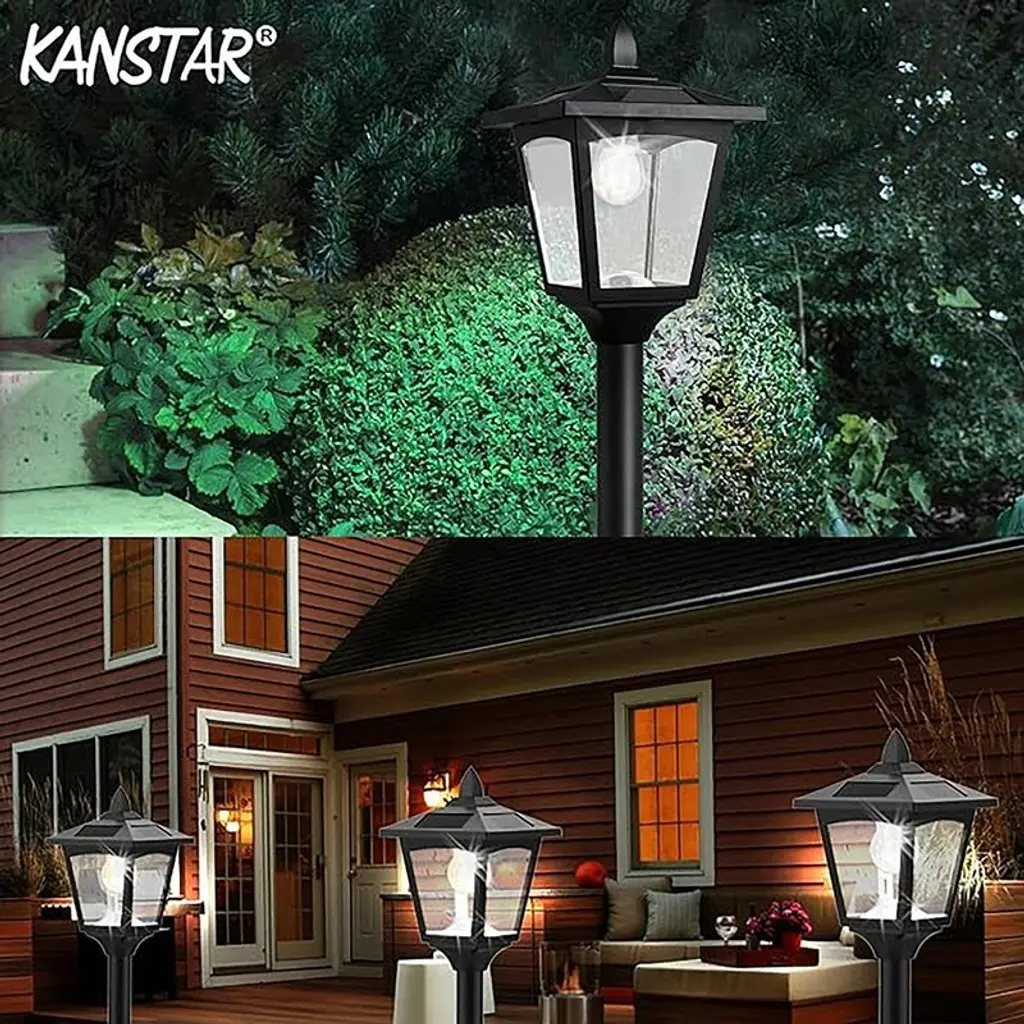 Solar Powered & Energy Saving: This 67" solar lamp post light charges via built-in solar panels, providing bright LED illumination at night. With a dusk to dawn sensor, it automatically turns on and off—no wiring or electricity needed. Perfect for energy-efficient outdoor lighting. Adjustable Height for Versatile Placement: Featuring sectional poles, this solar lamp post is adjustable up to 67", ideal for lawn borders, garden paths, walkways, and patios. Customize the height for your specific outdoor lighting needs. Waterproof & Durable: Crafted from UV-coated plastic and aluminum die-cast, this solar lamp post is IP65 waterproof, ensuring reliable performance in all weather conditions—rain, snow, or intense sunlight. Easy Assembly & Low Maintenance: With pre-installed AA Ni-Cd batteries and all necessary anchors and screws, setup is quick and easy. Place it in a sunny spot for year-round, maintenance-free illumination in your driveway, garden, or patio. Bright LED Illumination: Equipped with 4 high-efficiency LEDs, this solar lamp post provides a soft, white glow, enhancing safety and ambiance for walkways, flower beds, and other outdoor spaces.