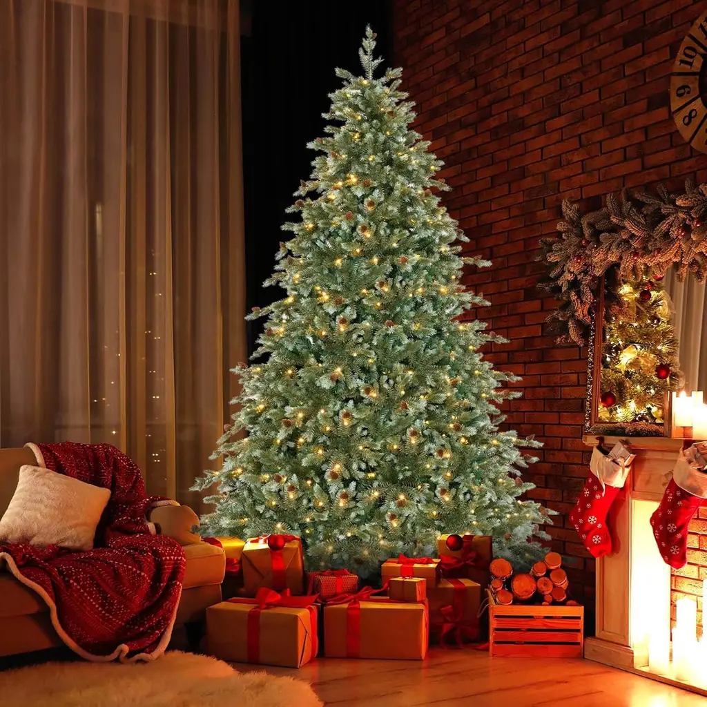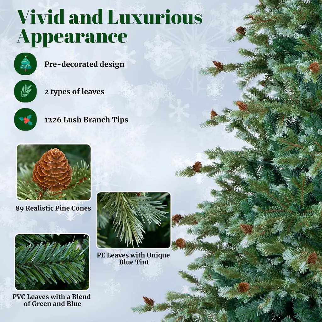 6/7/8 Ft Pre-Lit Christmas Tree Artificial Xmas Tree W/ Pine Cones - 6 Foot