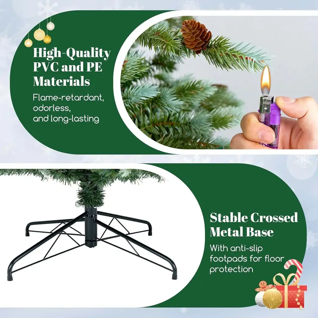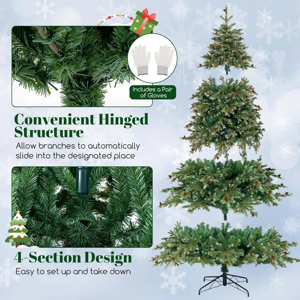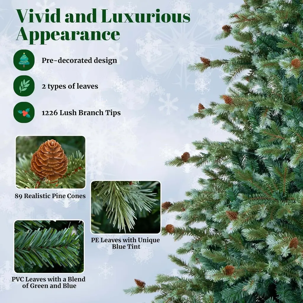 6/7/8 Ft Pre-Lit Christmas Tree Artificial Xmas Tree W/ Pine Cones - 7 Foot
