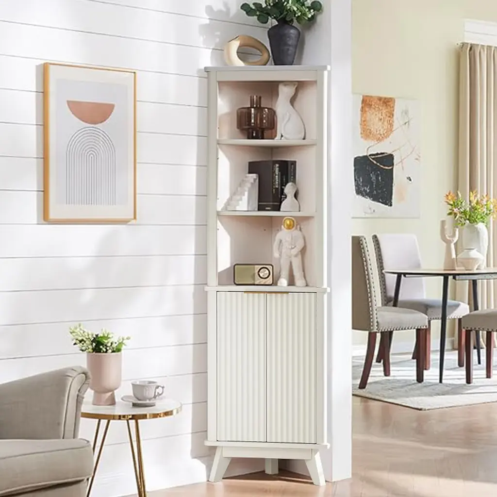 68" Tall Corner Cabinet, Modern Corner Storage Cabinet With Adjustable Shelves, Freestanding Organizer For Bathroom, Living Room, Off White