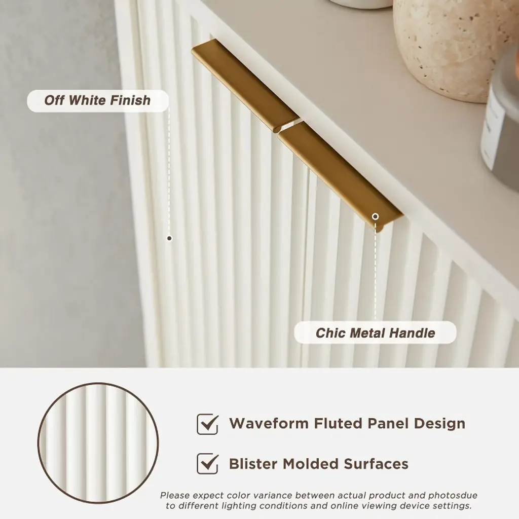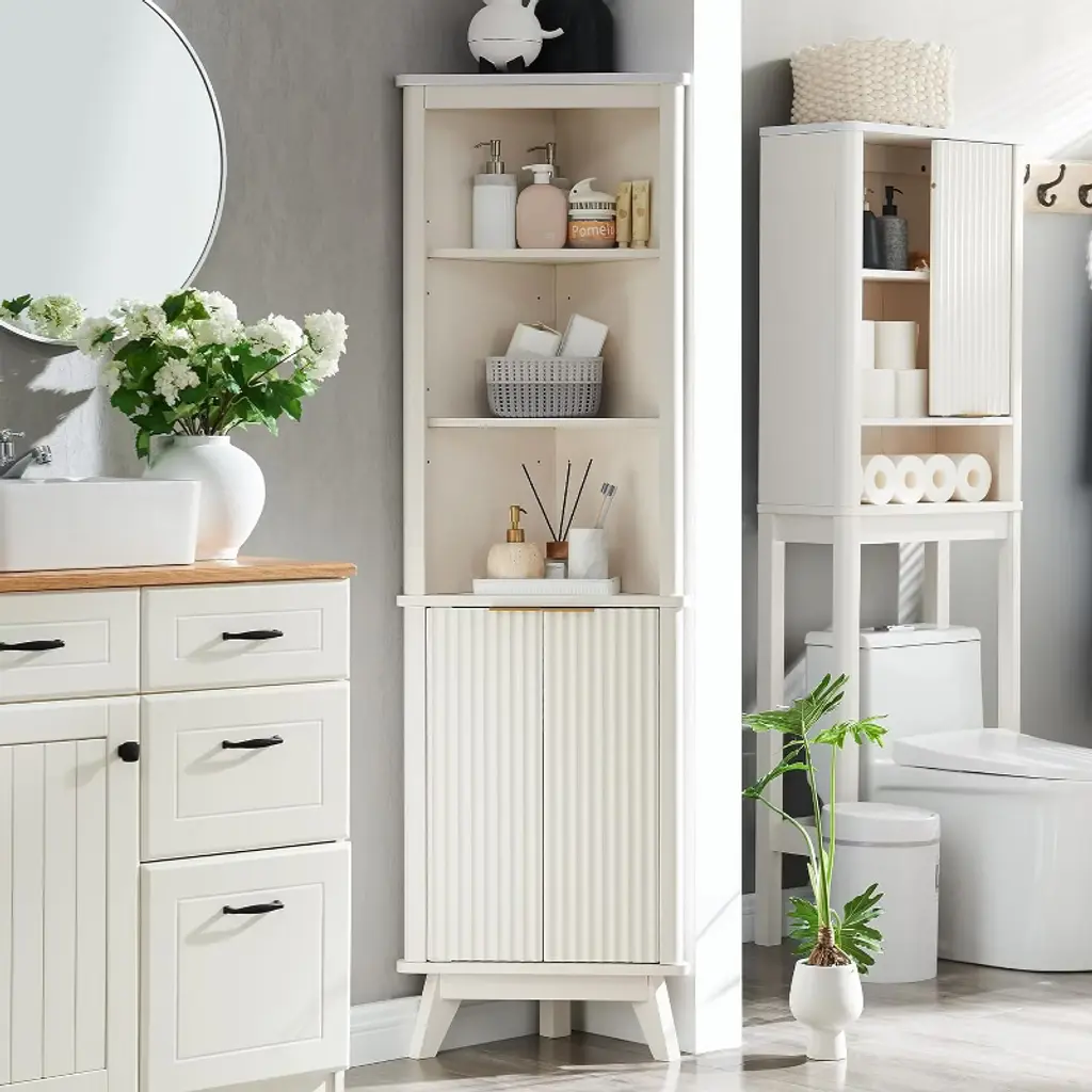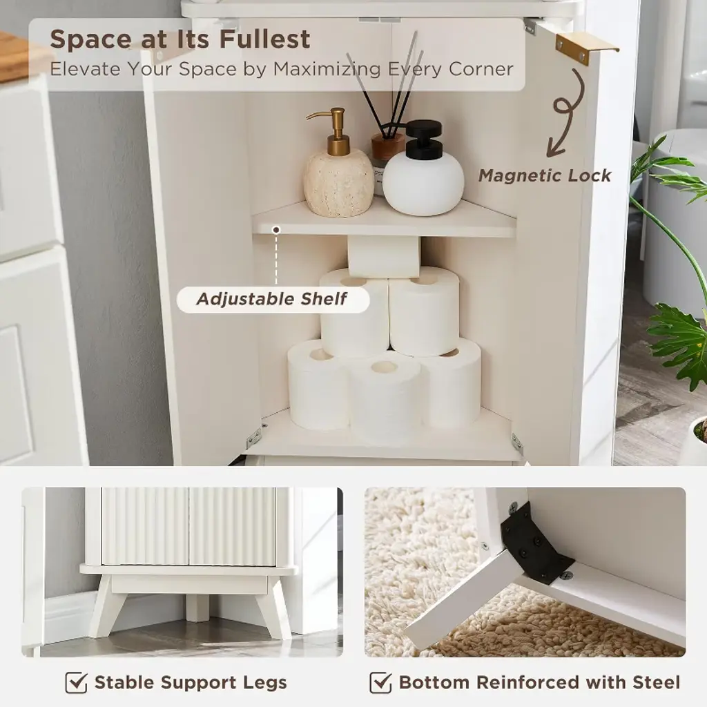 Classic Fusion of Design & Function Elevate your interiors with a cabinet that marries timeless elegance and contemporary flair. The signature waveform fluted panel creates striking visual depth, while the pristine faux marble surface features earthy veining that harmonizes with realistic oak wood textures. Sleek curved edges soften the design, and bold metal handles paired with angular splayed legs infuse modern sophistication. Perfect for elevating bathrooms, kitchens, or living spaces. Smart Storage, Seamless Adaptability Maximize organization with this 68"H multi-functional cabinet. Its semi-open upper section offers two adjustable shelves for display or storage, while the fluted-door lower cabinet conceals clutter. Compact yet spacious (11.6"D x 20.5"W), it transitions effortlessly between rooms—ideal as a bathroom vanity, kitchen pantry, hallway console, or chic living room accent. Every detail ensures clutter-free elegance. Engineered for Lasting Resilience Crafted with premium P2 MDF core and reinforced metal framing, this cabinet withstands daily use. Advanced blister molding creates tactile fluted textures, while the melamine-coated marble-style top resists scratches, moisture, and stains. An innovative steel-reinforced base guarantees unwavering stability, making it a durable investment for humid environments like bathrooms. Thoughtful Assembly, Hassle-Free Experience Prioritizes convenience: Pre-labeled components, illustrated instructions, and a spare parts kit streamline assembly. Designed for two-person setup, the process is intuitive and efficient—typically completed within 60-90 minutes. No specialized tools required. Fortified Shipping, Zero-Risk Delivery Your cabinet arrives safeguarded with dual-layer protection: shock-absorbent Styrofoam and reinforced wooden boards shield every corner. While exterior box scuffs may occur during transit, our packaging ensures the product remains pristine. Pre-dispatch quality checks further minimize issues.