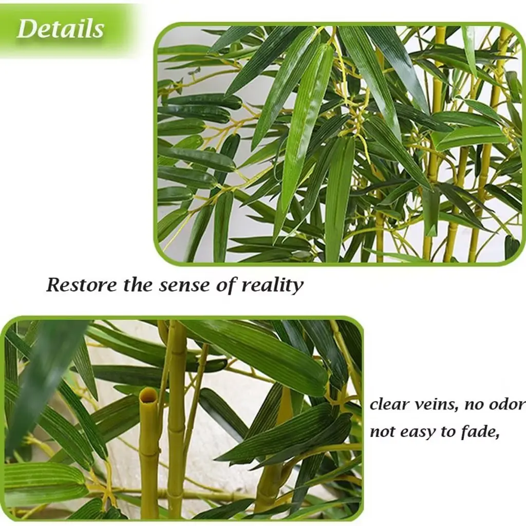 The textured silk leaves capture the fine details of real bamboo, ensuring they are resistant to shedding or wilting. The cement base offers superior stability, preventing the tree from toppling over.This bamboo tree is ideal for both indoor and outdoor use, enhancing the look of any space. It's suitable for entryways, hallways, patios, gardens, kitchens, offices, living rooms, and cottages.