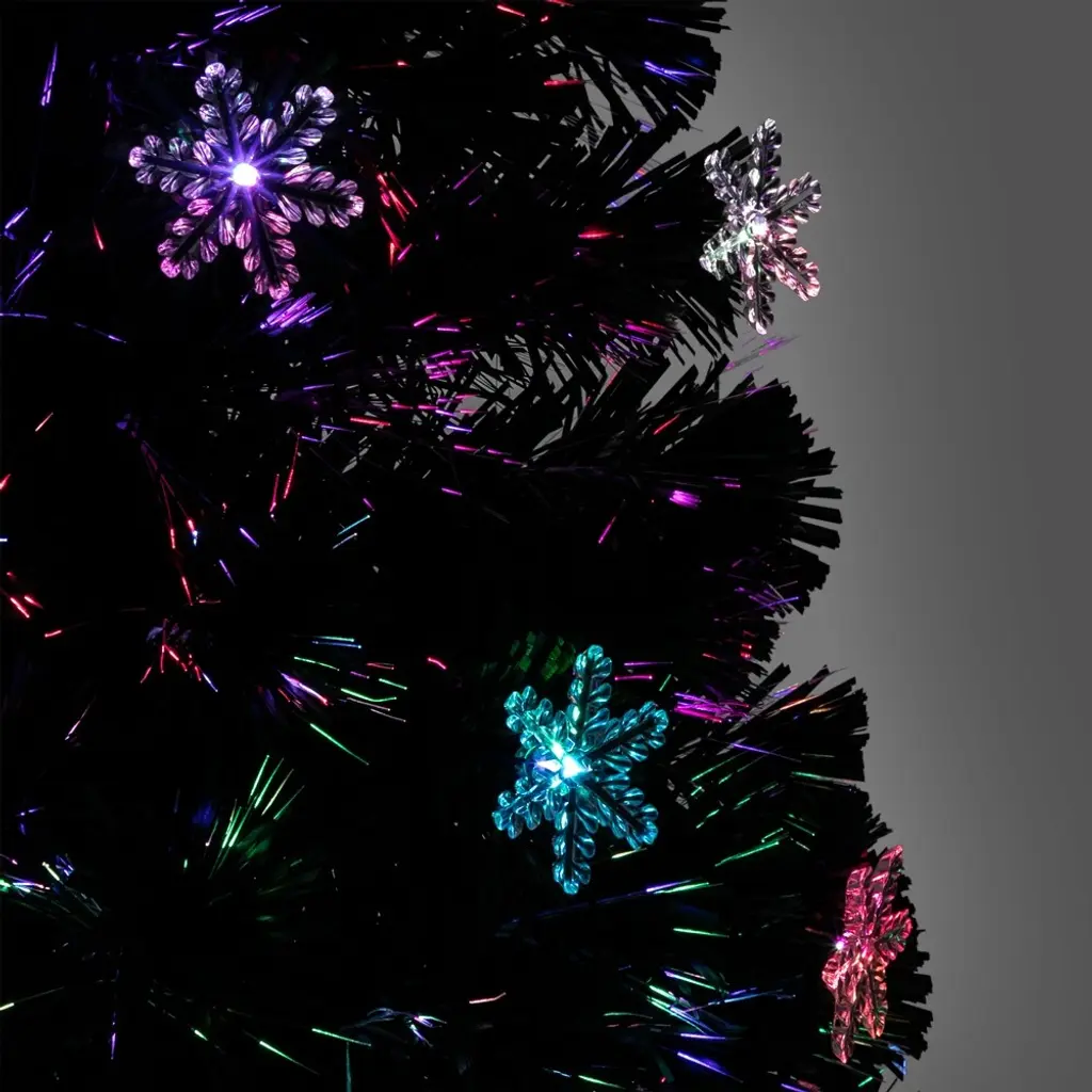 Features:Eco-friendly Material - The blades of our christmas tree are made from high quality PVC material, which not only makes the tree looks more real and more full, but also add the anti-crush capacity to the tree. 7 Flash Color - Our Pre-lit christmas tree has 7 different colorful flash, makes your tree more shiny. Add a wonderful Christmas holiday atmosphere, take it to your home Now!Pre-lit with Electrodeless LED Lights - This christmas tree is pre-lit with optical fiber tubes and low voltage electrodeless LED lights with 7 different colors, these electrodeless LED lights are energy-efficient and long lasting. Pre-lit design saves your time to set up electric lines, you just need to put your favourite decorations on the tree. Metal Stand -This christmas tree uses metal stand instead of cheap plastic stand, and add plastic cover on the end of the stand. Through this design all we want to achieve is to add the stability of the tree and protect your floor. Easy Setup - To finish the assembly of this tree it requires only few steps, after putting branches and metal stand together, all the tree requires you to do is straighten out the branches, so the tree will achieve the best effect. Shining Ornament - With Snowflakes and top star,makes your tree look more real,and add an romantic holiday atmosphere to your home and your friends.Specification:Material: Leaves are PVC materialBase: 40cm Iron FrameProduct Height: 6ft (Without Tree Top Branches)Contains 58 Acrylic SnowflakesPacking Dimensions: (39.37 x 7.48 x 7.48)" / (100 x 19 x 19)cm (L x W x H)Product Weight: 10.80lb / 4.9kgPackage Include:1 x Fiber Optic Christmas Tree