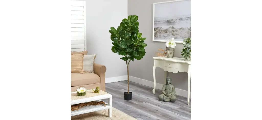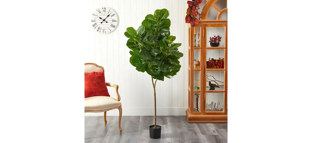 Two different sized stems - showcase large, glossy Fiddle Leaf leaves that look incredibly lifelike in the Fiddle Leaf Fig Artificial Tree. Trick all your friends into thinking that you can grow a Fiddle Leaf Fig in any indoor area. Standing 6' from a planter (included in height), curate in tight spaces. Perfect for an apartment, bathroom, foyer, awkward corner, or bedroom.